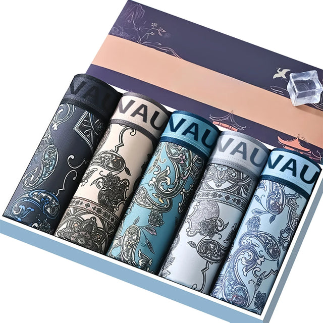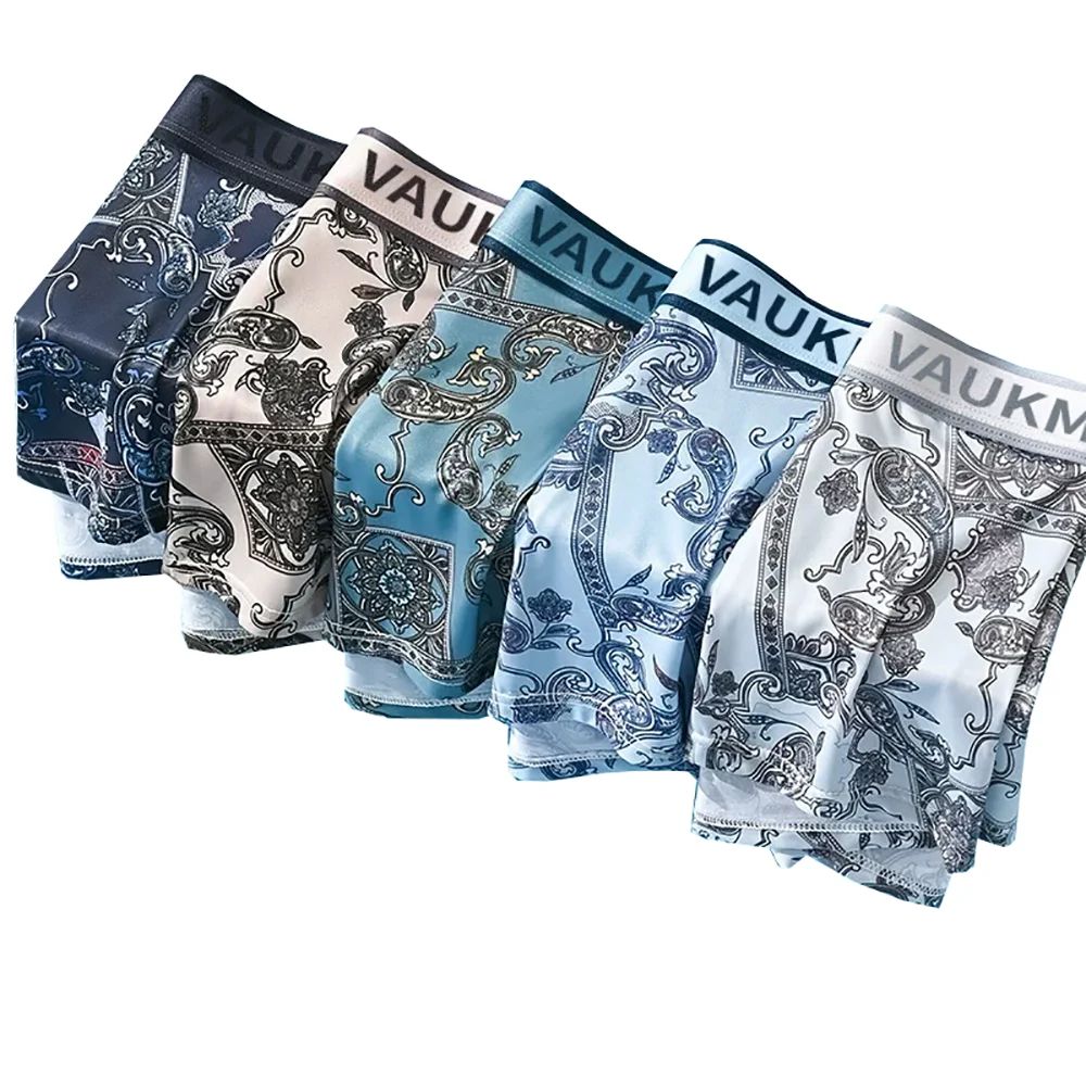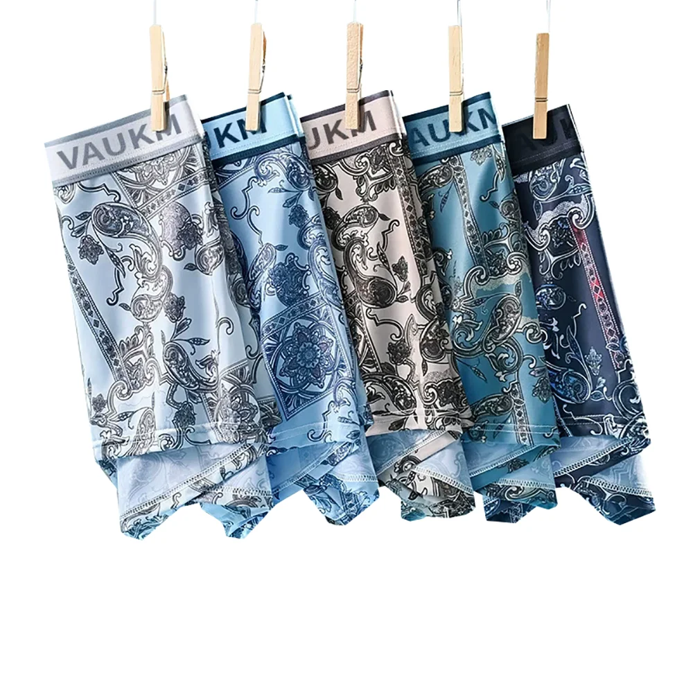 5pcs/set Men's Chinese-style Ice Silk Underwear Fashion Men Panties Breathable Plus-size Anti-bacterial P...
