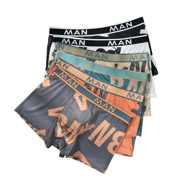 6PCS/SET Men's Underwear Ice Slik Men Panties Boys' Boxing Letter Printed Underwear Plus Size L-4XL Breat...