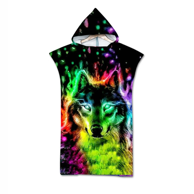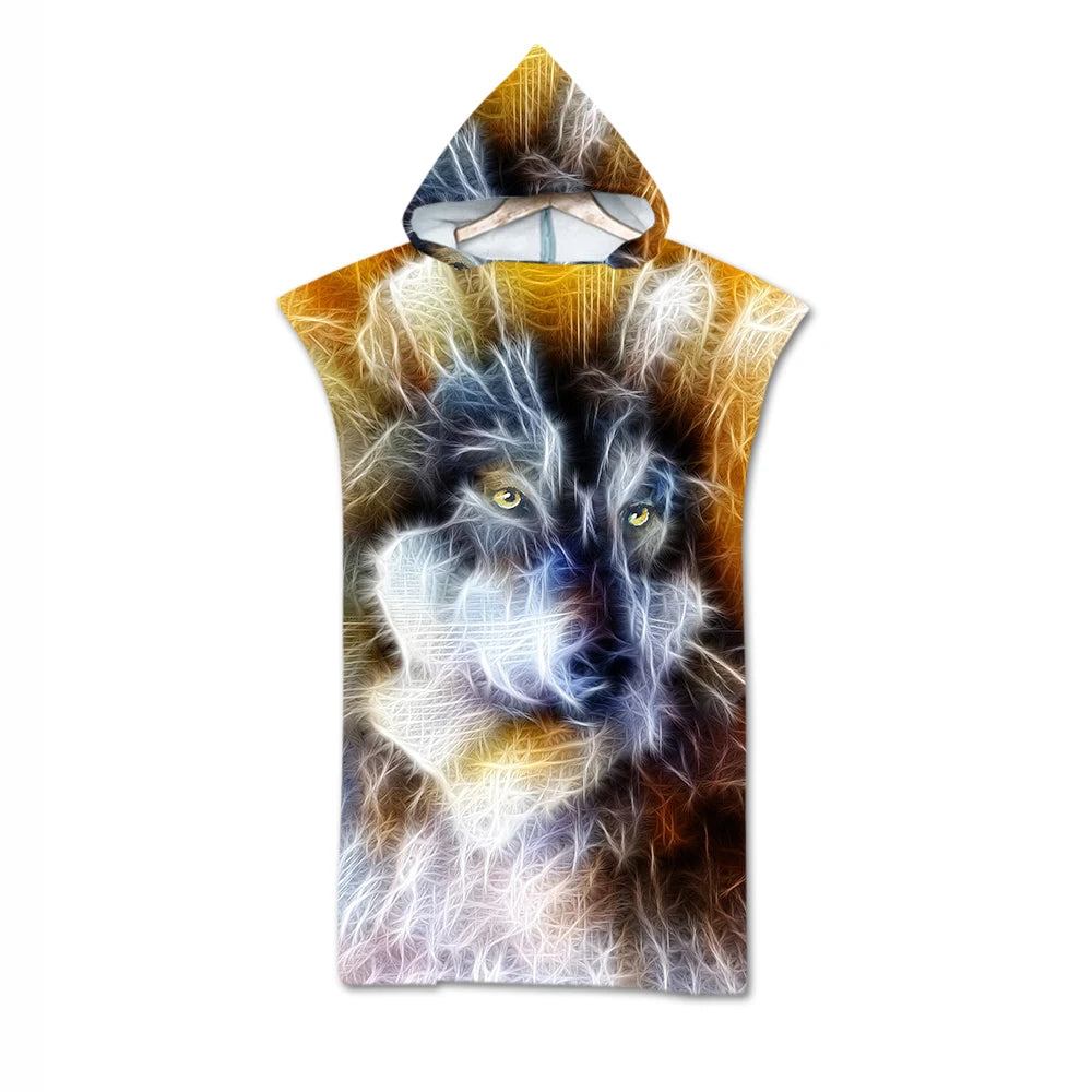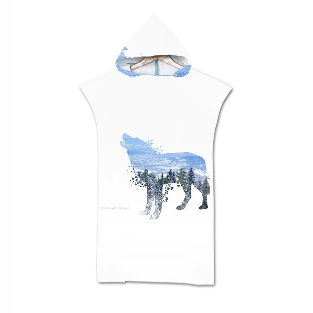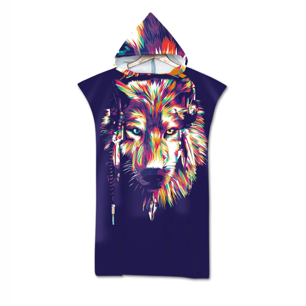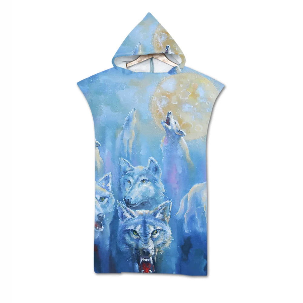 Bath Beach Towel with Hood Microfiber Wolf Printed Hooded Robe Towel Poncho for Swimming Beach Adults and...