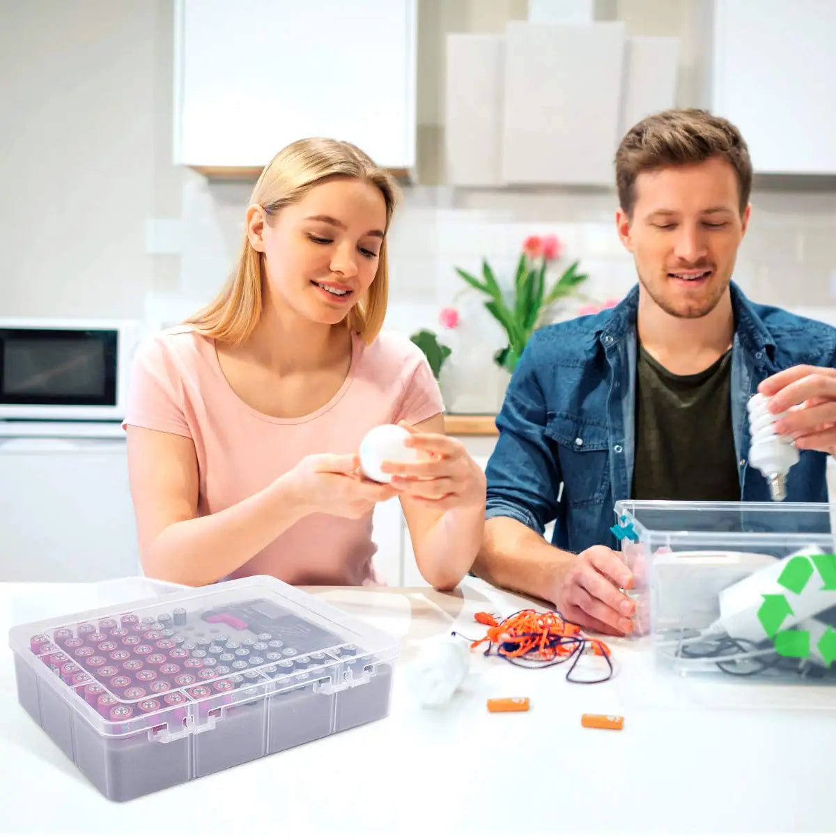 Battery Storage Organizer Box with Battery Tester, Garage Caddy Case Holder