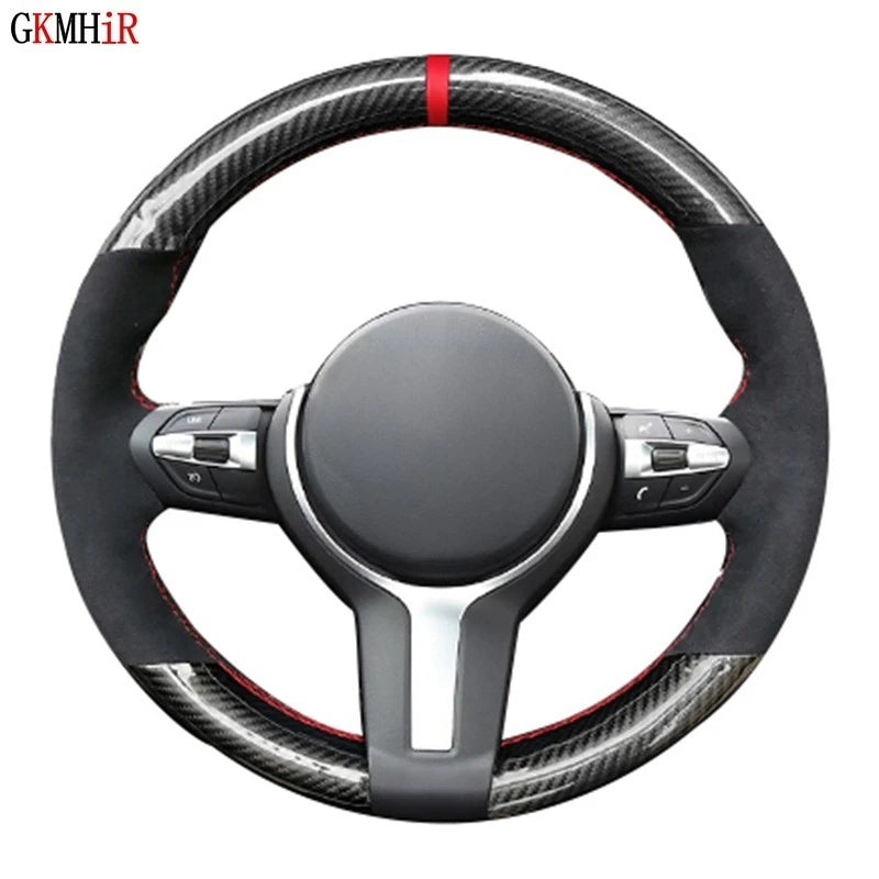 Black Carbon Fiber Suede DIY Car Steering Wheel Cover For BMW M Sport F30 F31