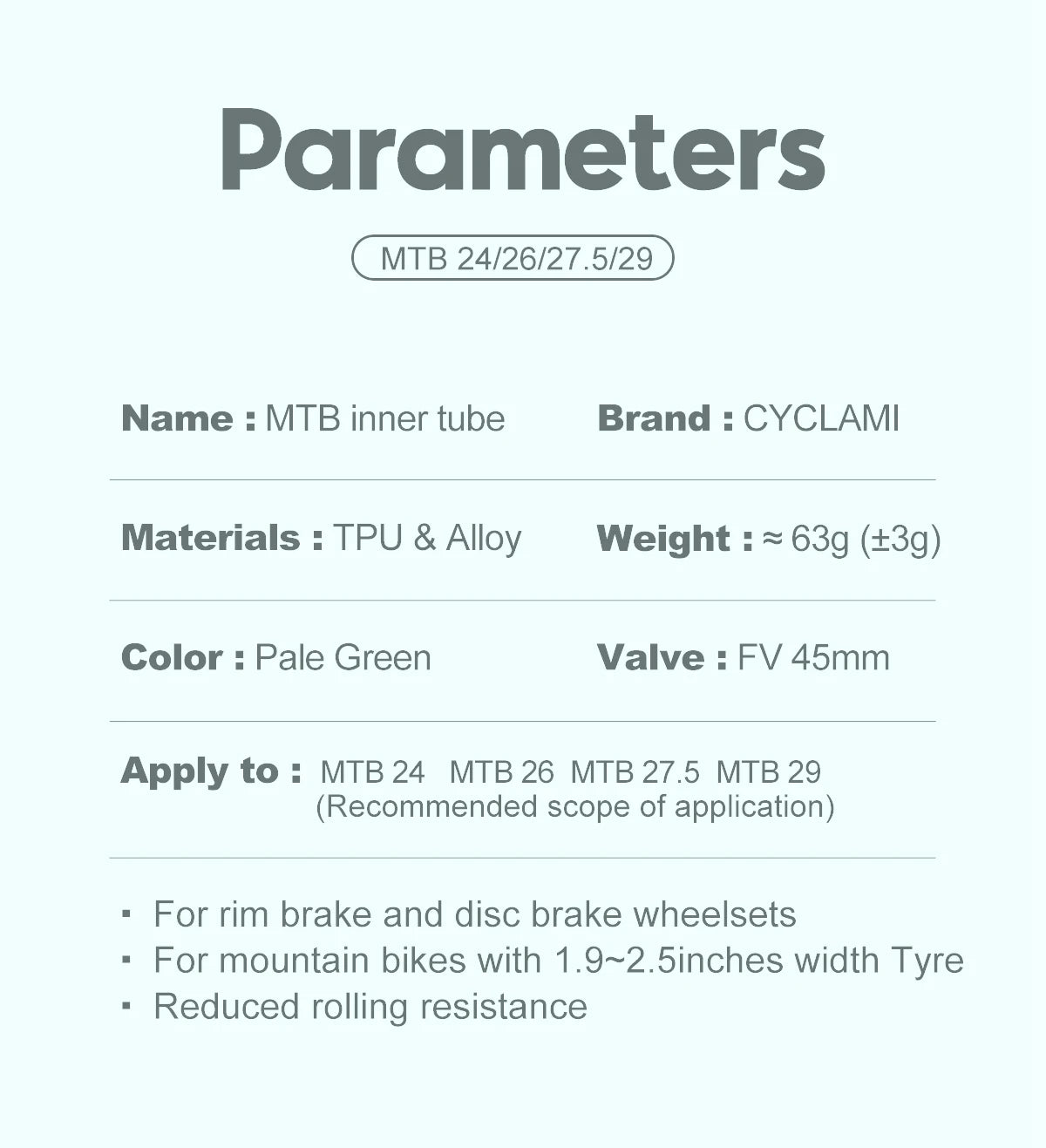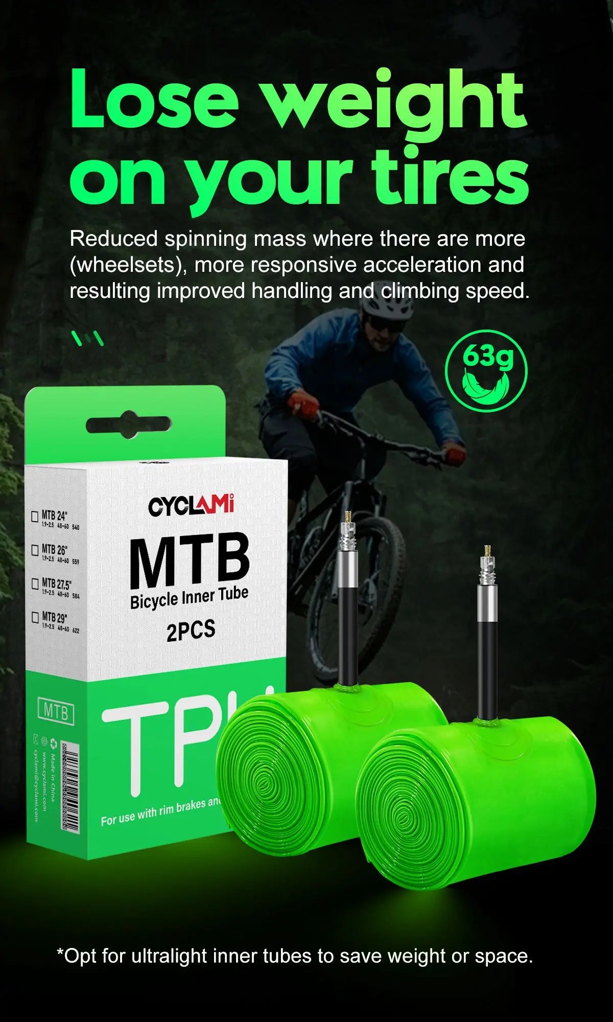 Cyclami Ultralight Bike Inner Tube 26 27.5 29 Inches MTB Bicycle TPU Material...
