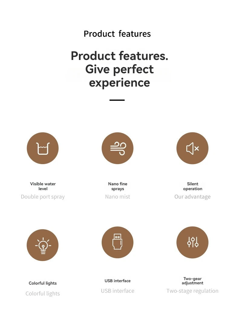 Dual Nozzle USB Humidifier 800ml H Super Mist & Ultra Quiet Car Home