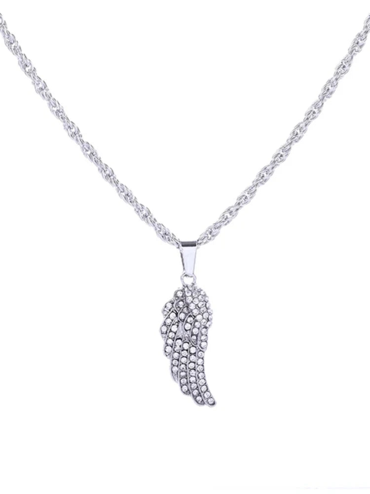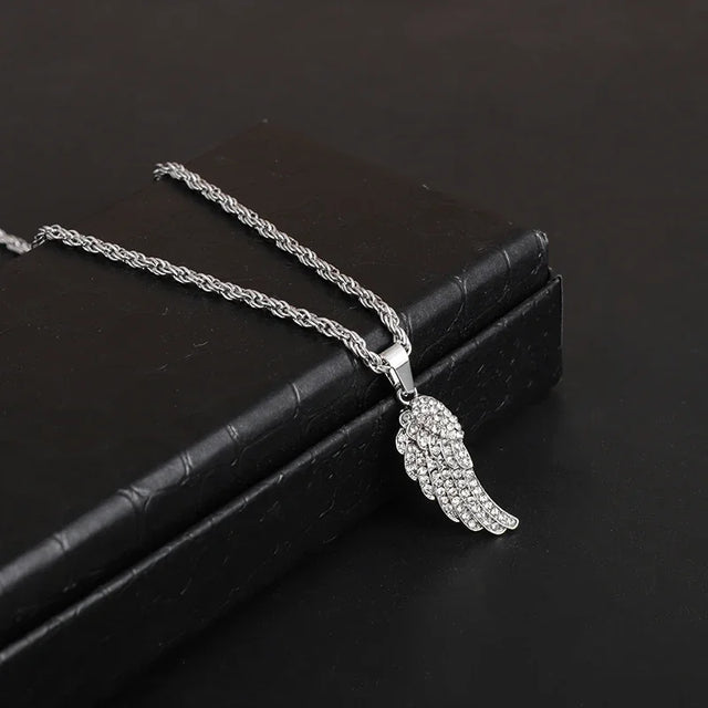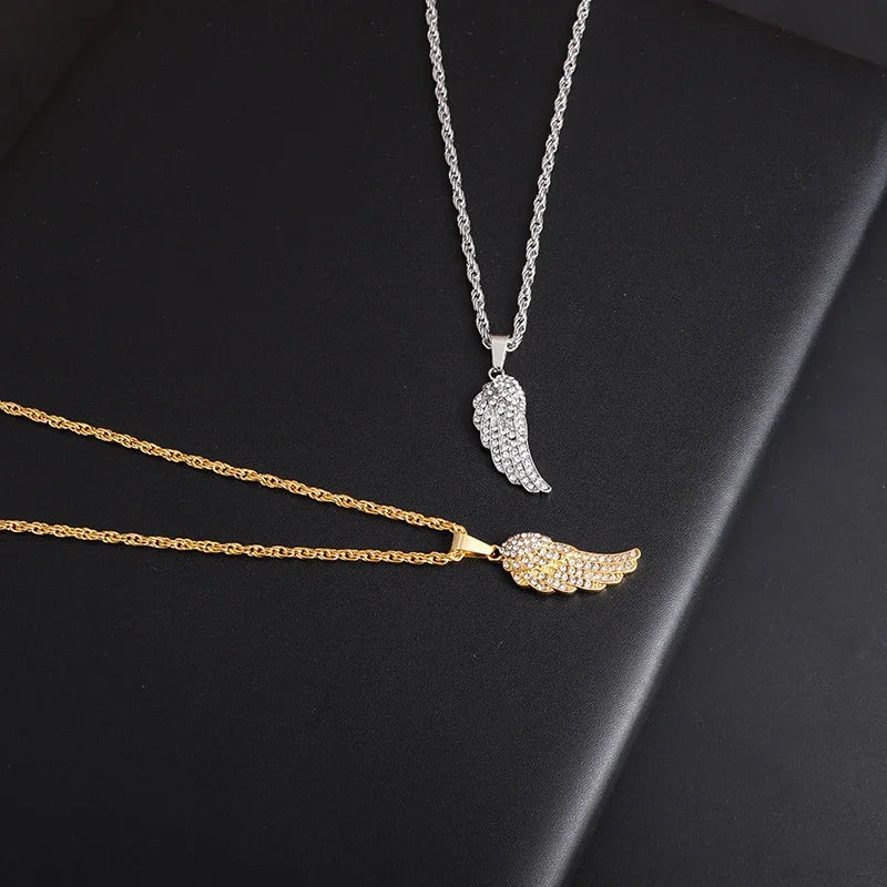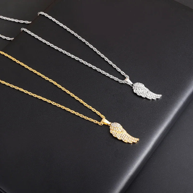 Exquisite Shiny Zircon Inlaid Angel Half-Wing Pendant for Men and Women Fashion Casual Travel Clavicle Ch...