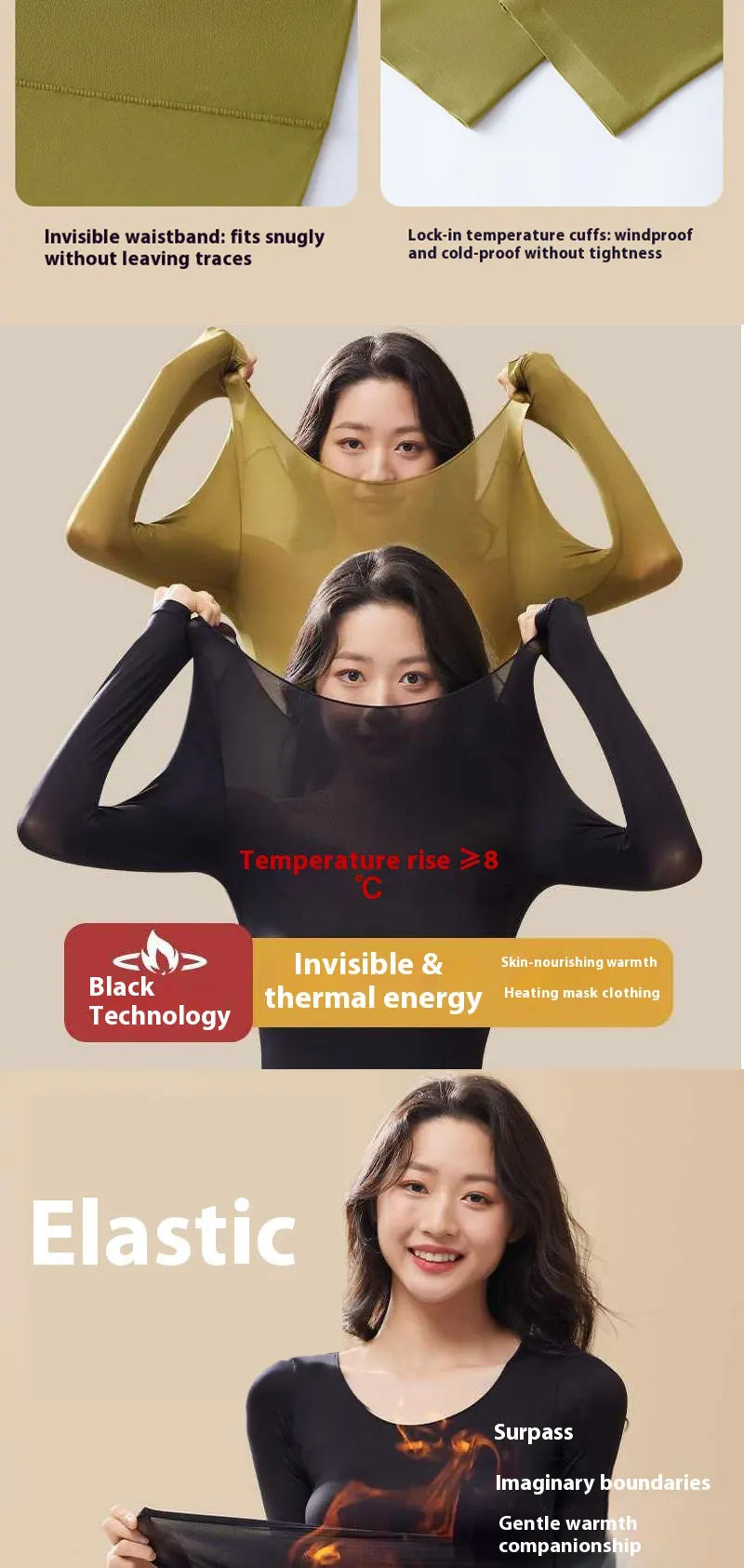 Flarixa Seamless Thermal Underwear Set Women First Layer Thermal Top Long Joh...