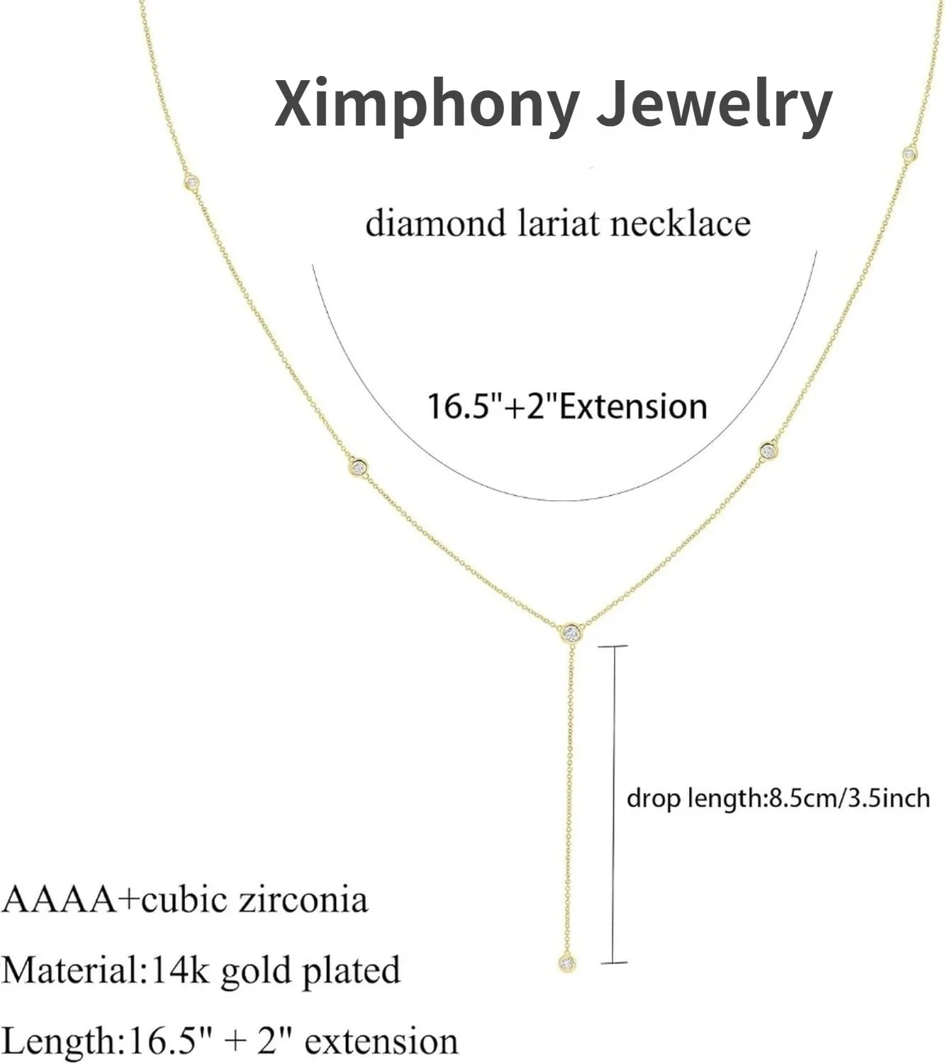 Gold Plated CZ Lariat Necklace for Women Boho Fashion Jewelry Women, Silver P...