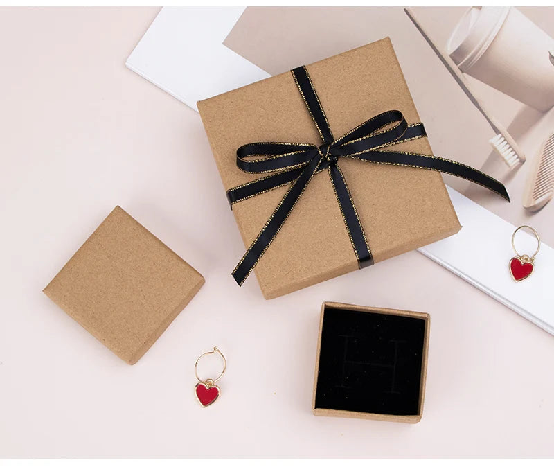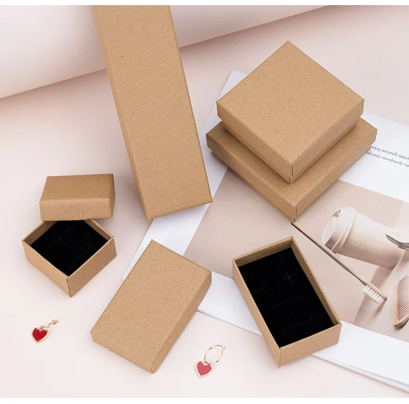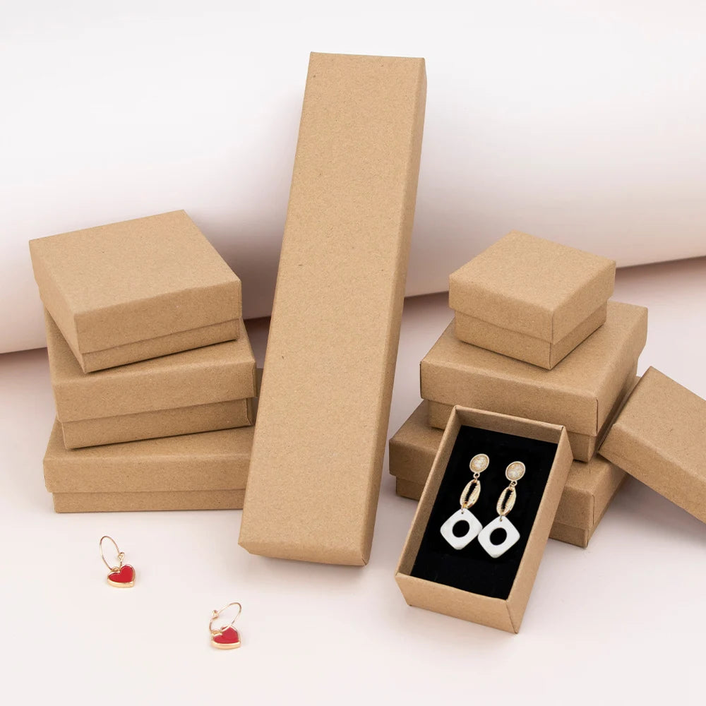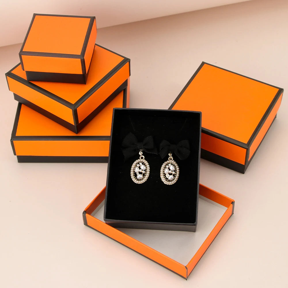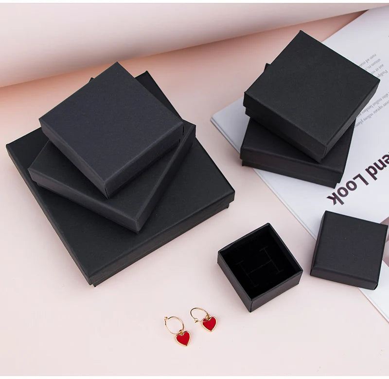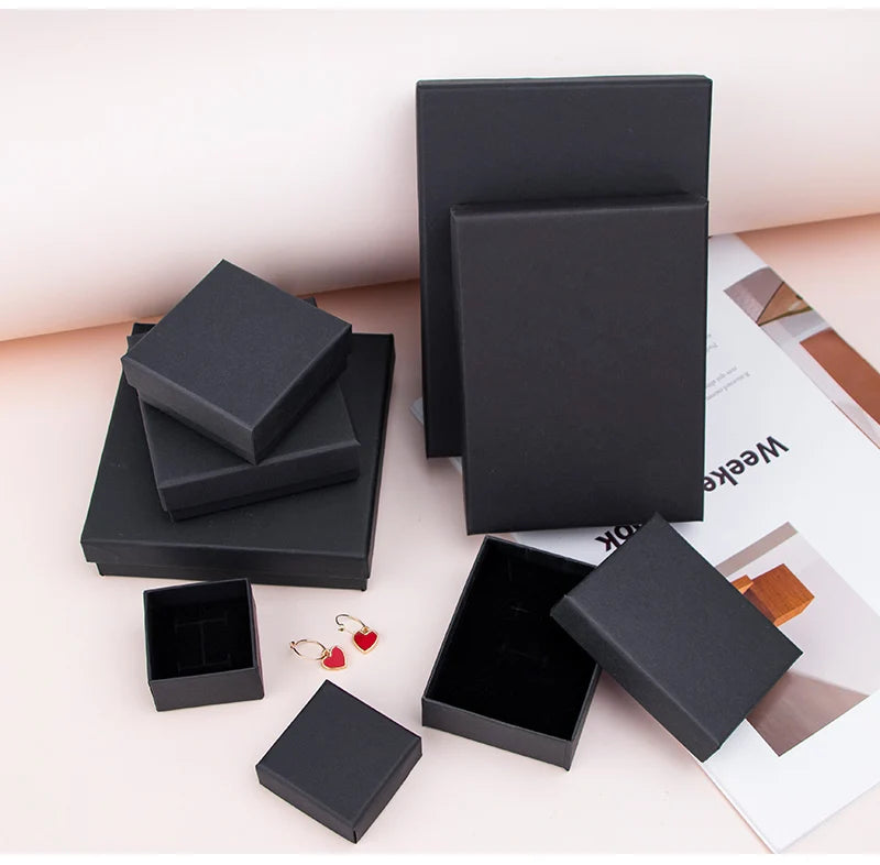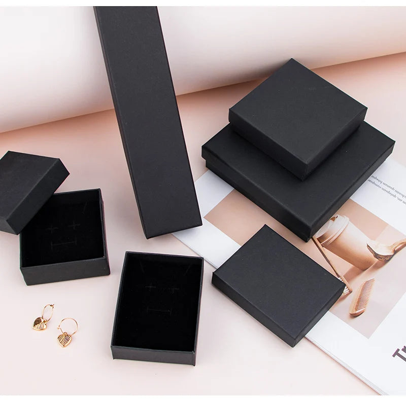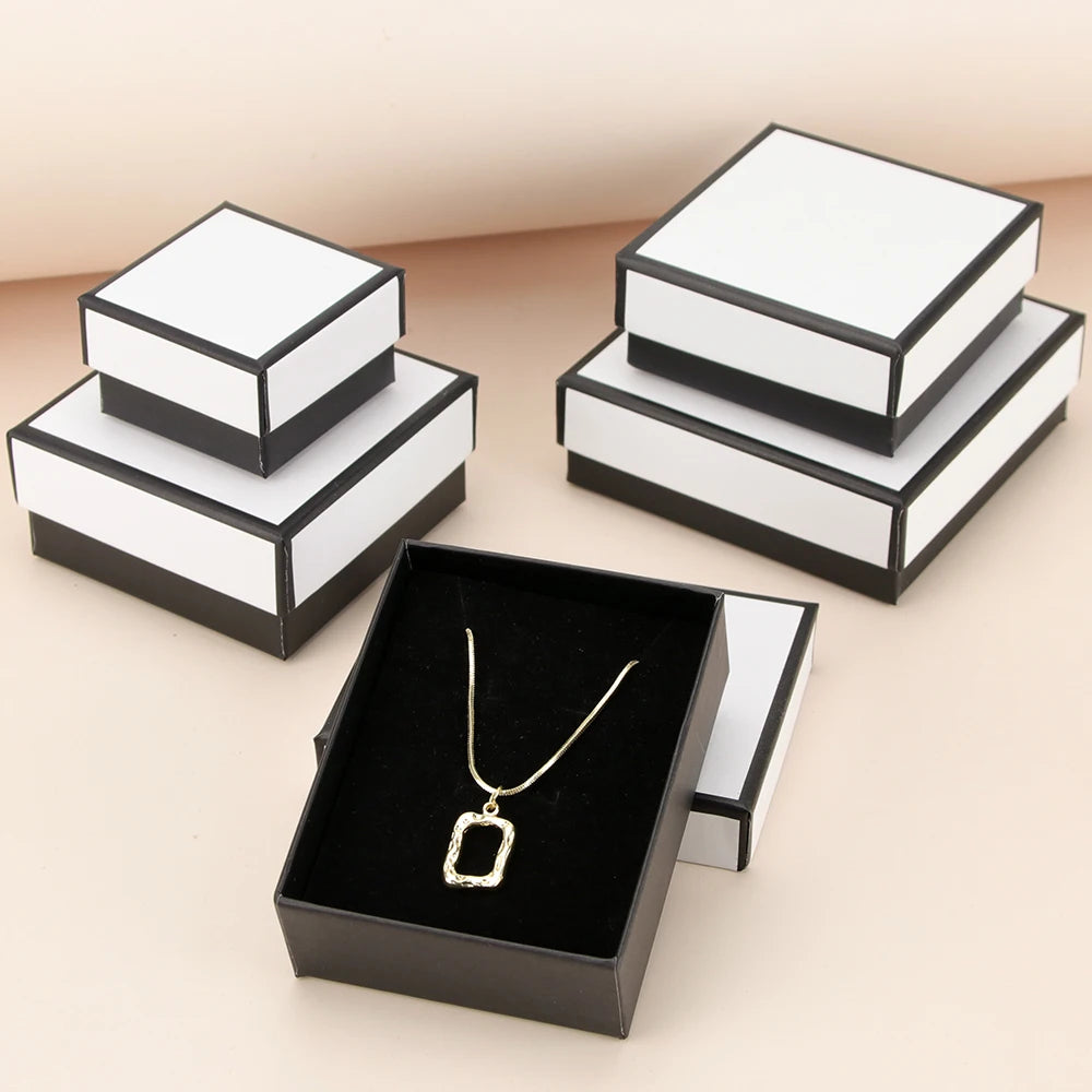 jewelry gift box jewelry package carton rectangular sponge lined black cow le...