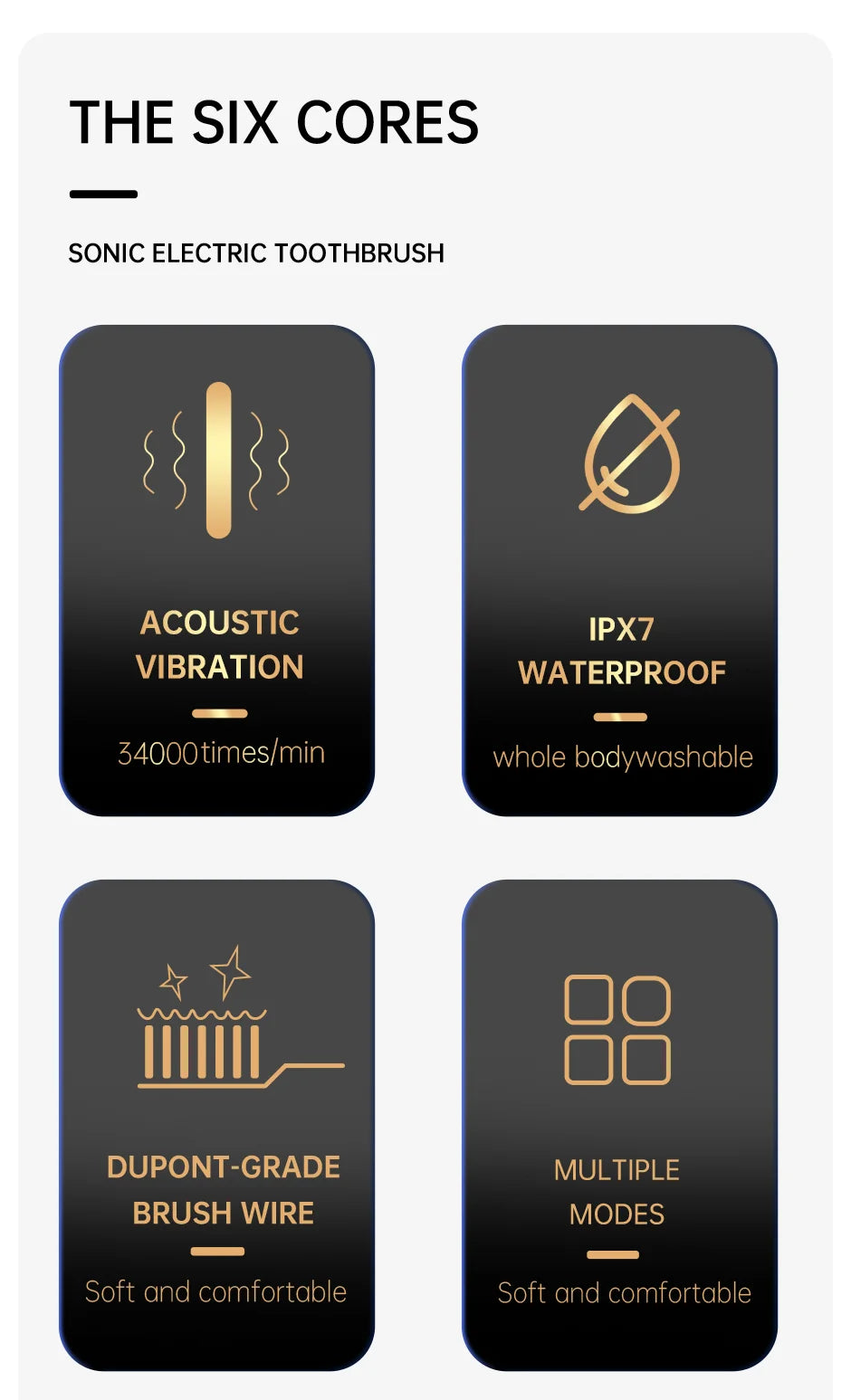 Jianpai Adult Black White Classic Acoustic Electric Toothbrush Adult 5 gear Mode
