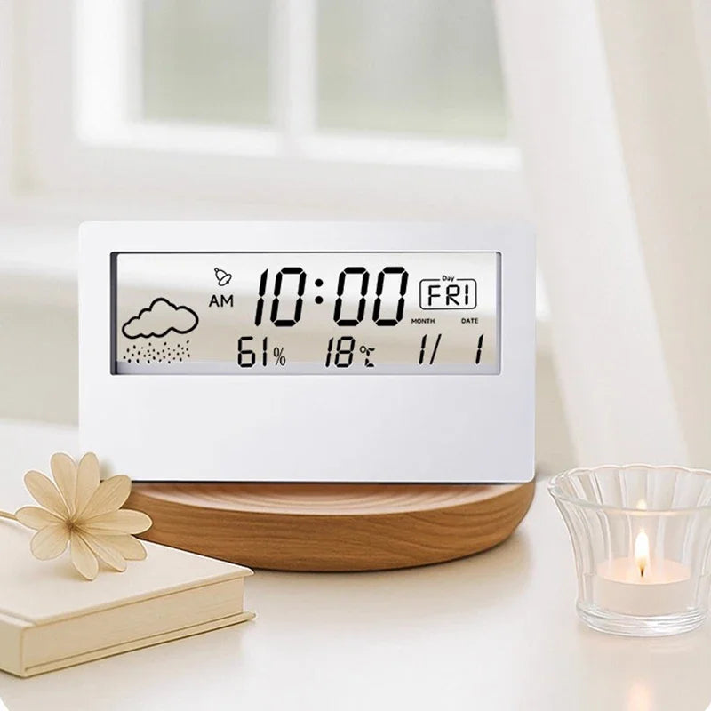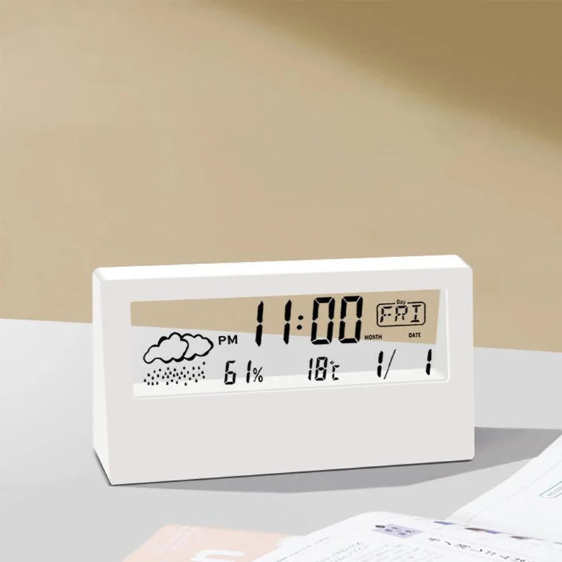 LCD Desktop Alarm Clock Transparent Calendar Weather and Digital Temperature ...