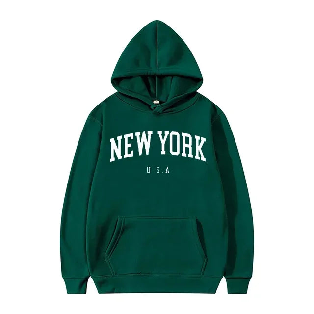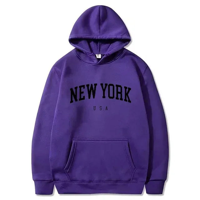 Men s Trendy York Letter Print Hoodie Adult Sweatshirt Casual Harajuku Style ...