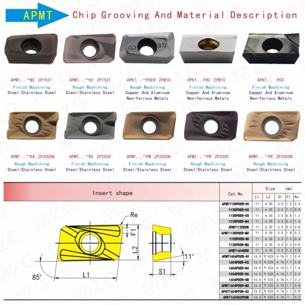 MZG 10pcs Apmt 1135 1604 Pder H2 M2 Zp151 CNC Machining Cast Iron RIght Angle