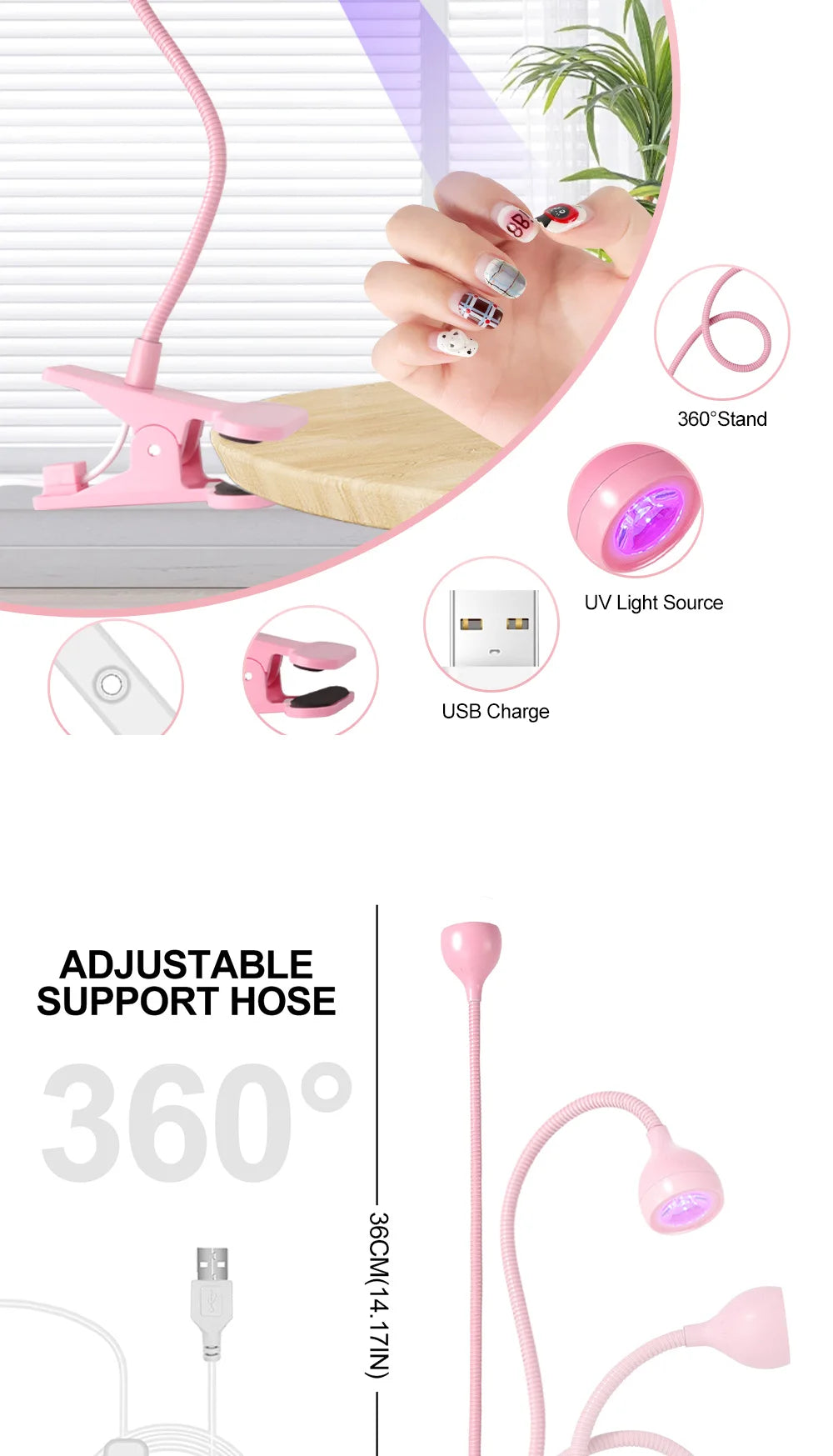 Nail LED UV Lamp for Drying Gel Nails Polish Clip On Flexible Desk Mini Portable