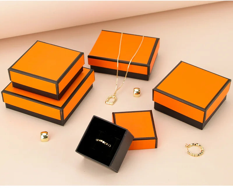 Orange jewelry gift box jewelry packaging carton jewelry storage box ring nec...