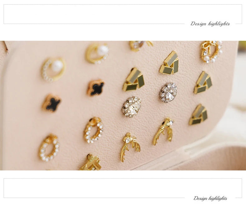 Portable Jewelry Storage Box Travel Organizer Jewelry Case Leather Storage Ea...