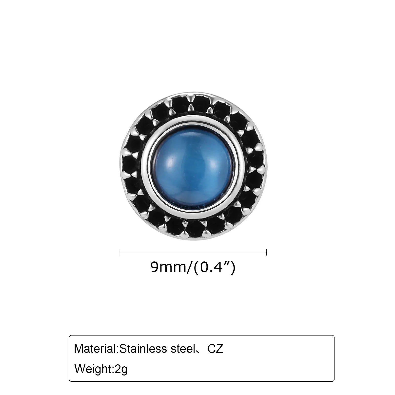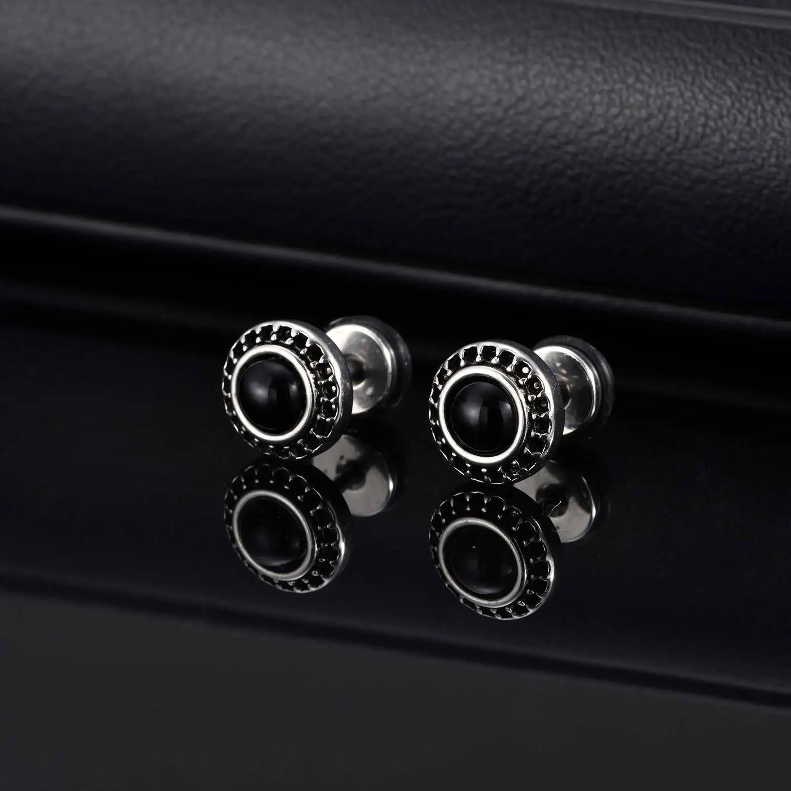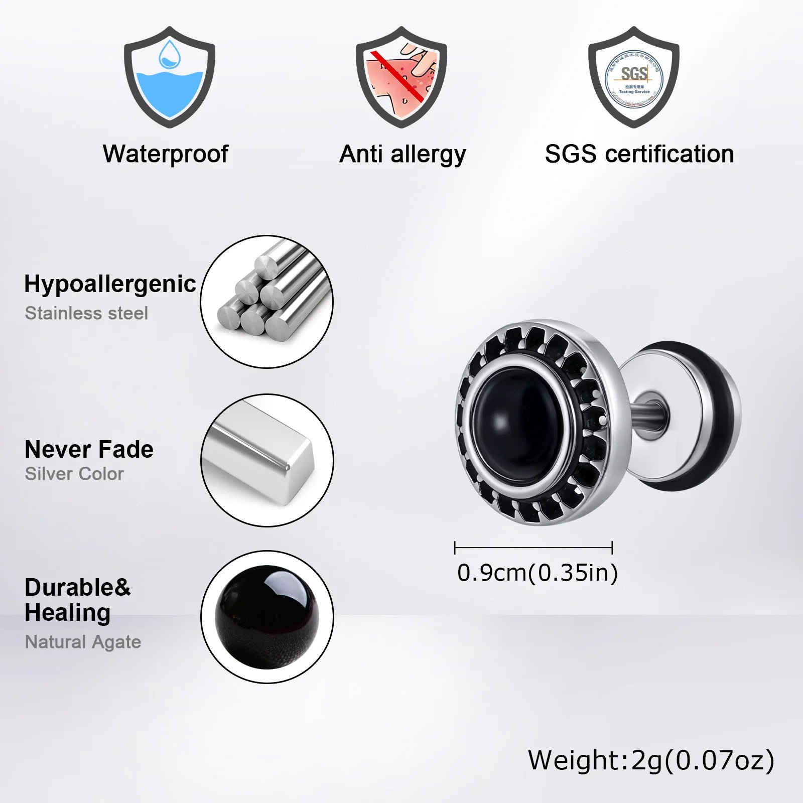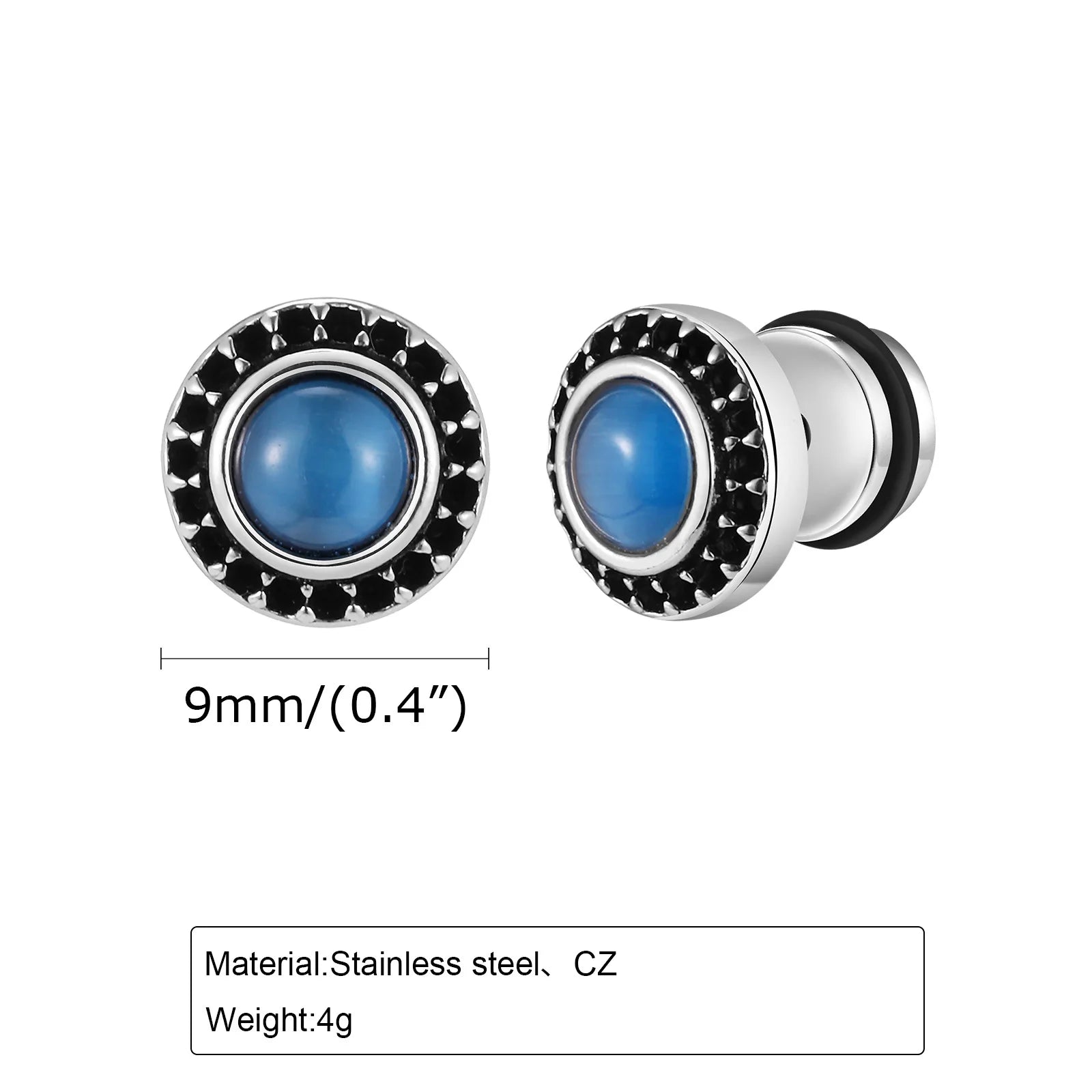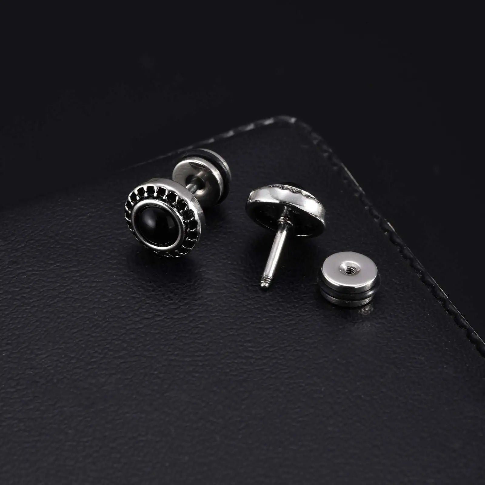 Punk Natural Stone Stud Earrings for Men Boys, Tiger Eye Stone Round Earrings