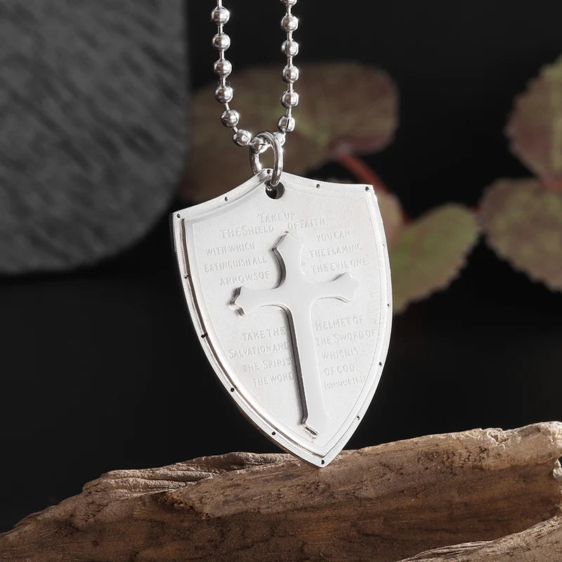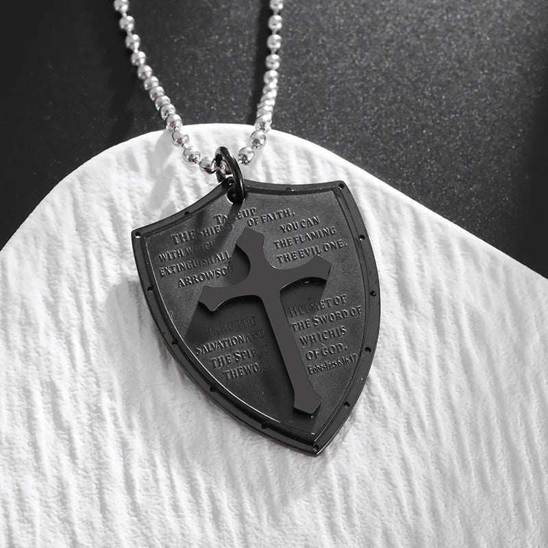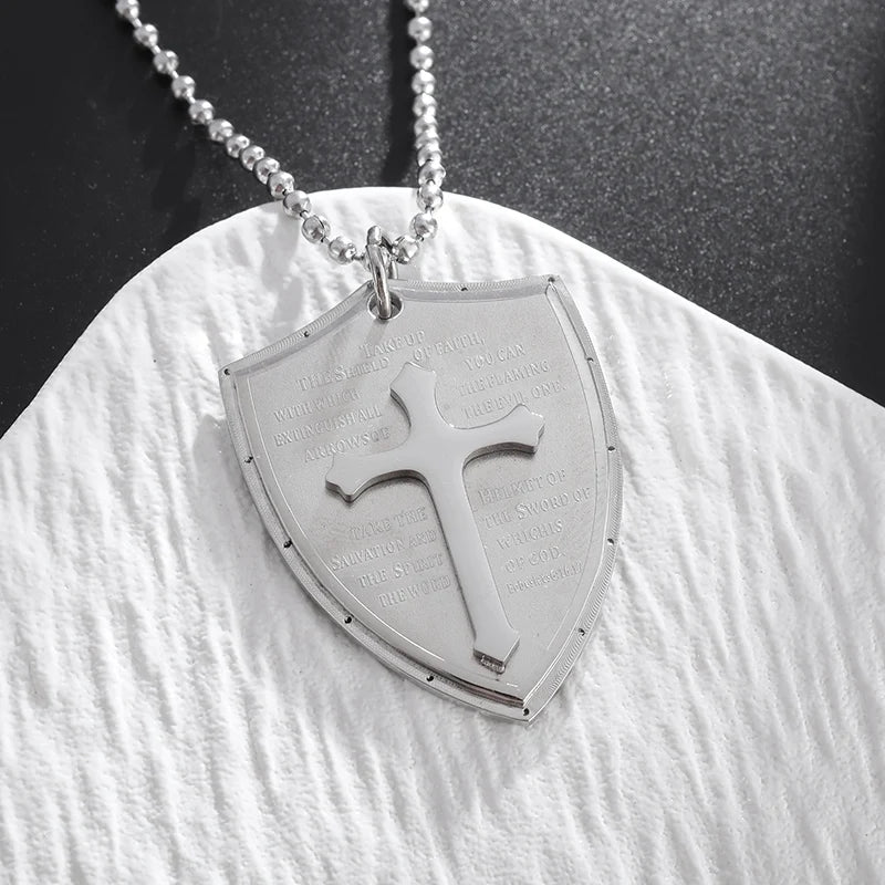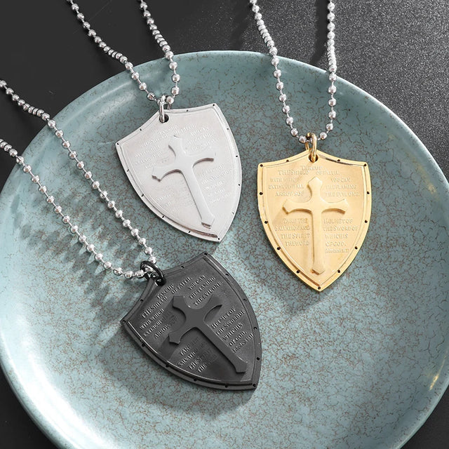 Shield of God Ephesus Cross Jesus Bible Necklace Armor of God Stainless Steel Pendant Men's Faith Jewelry