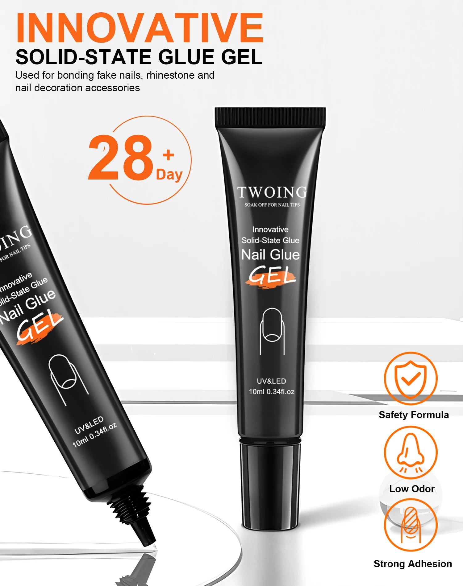 Solid Nail Glue Nail Tips Gel for Press On Nails, Acrylic Nail Gel for Manicu...