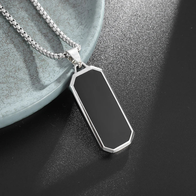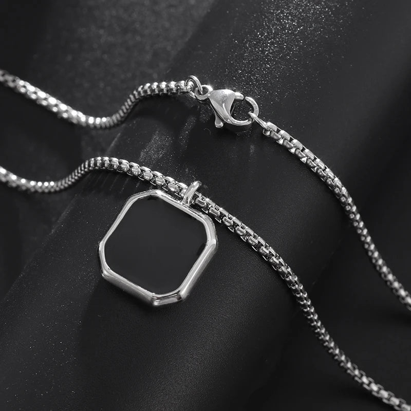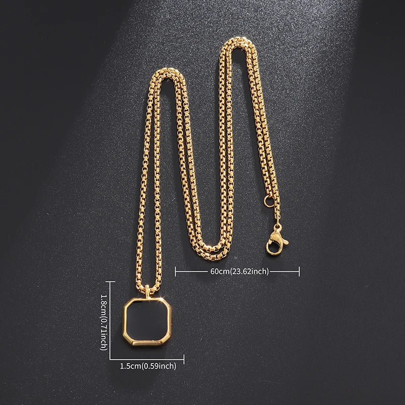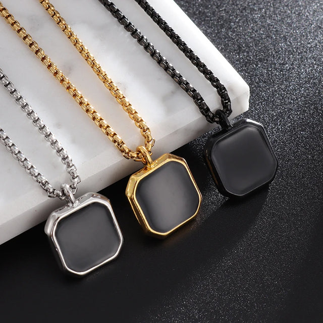 Stainless Steel Classic Geometric Polygonal Black Square Natural Stone Necklace Pendant for Men Fashion C...