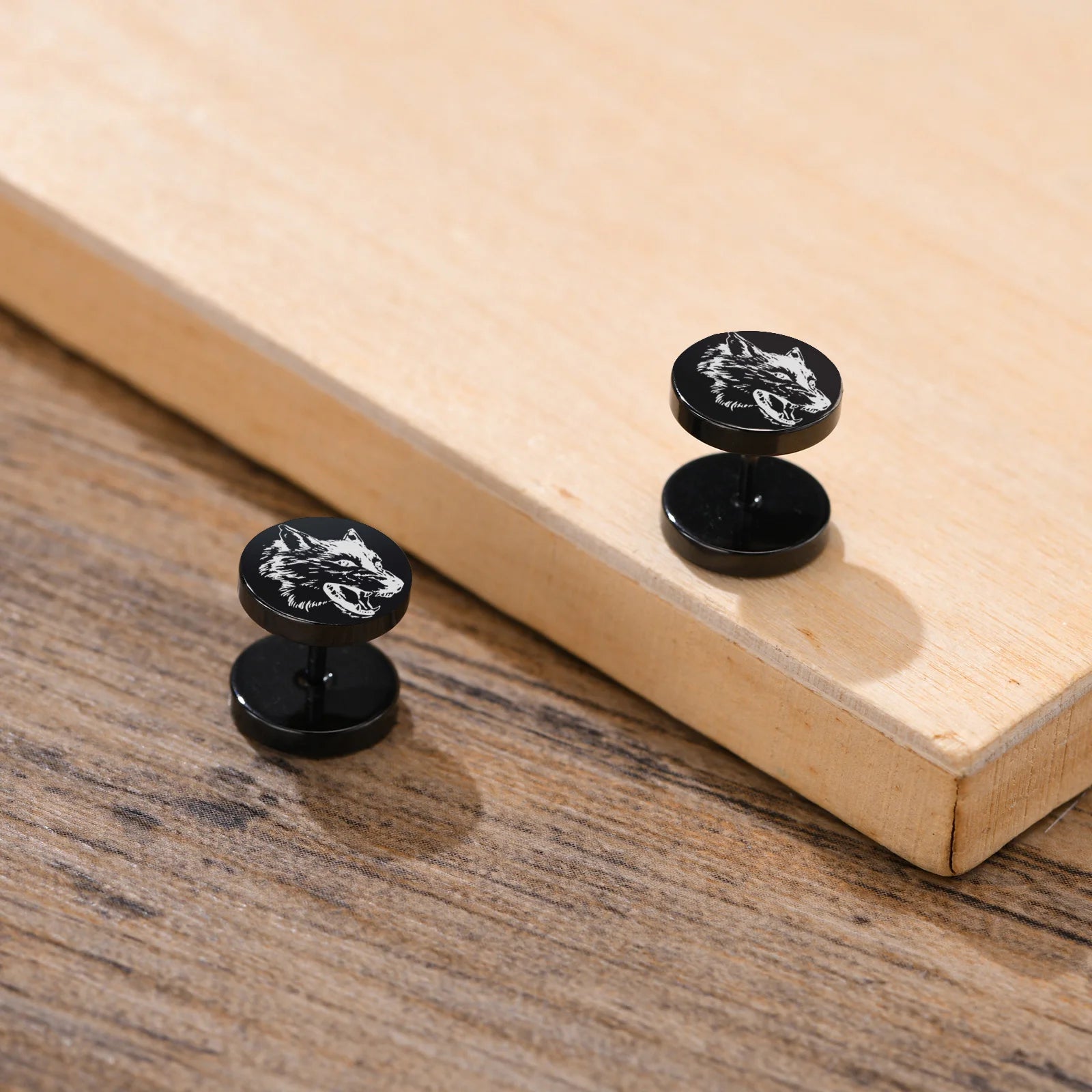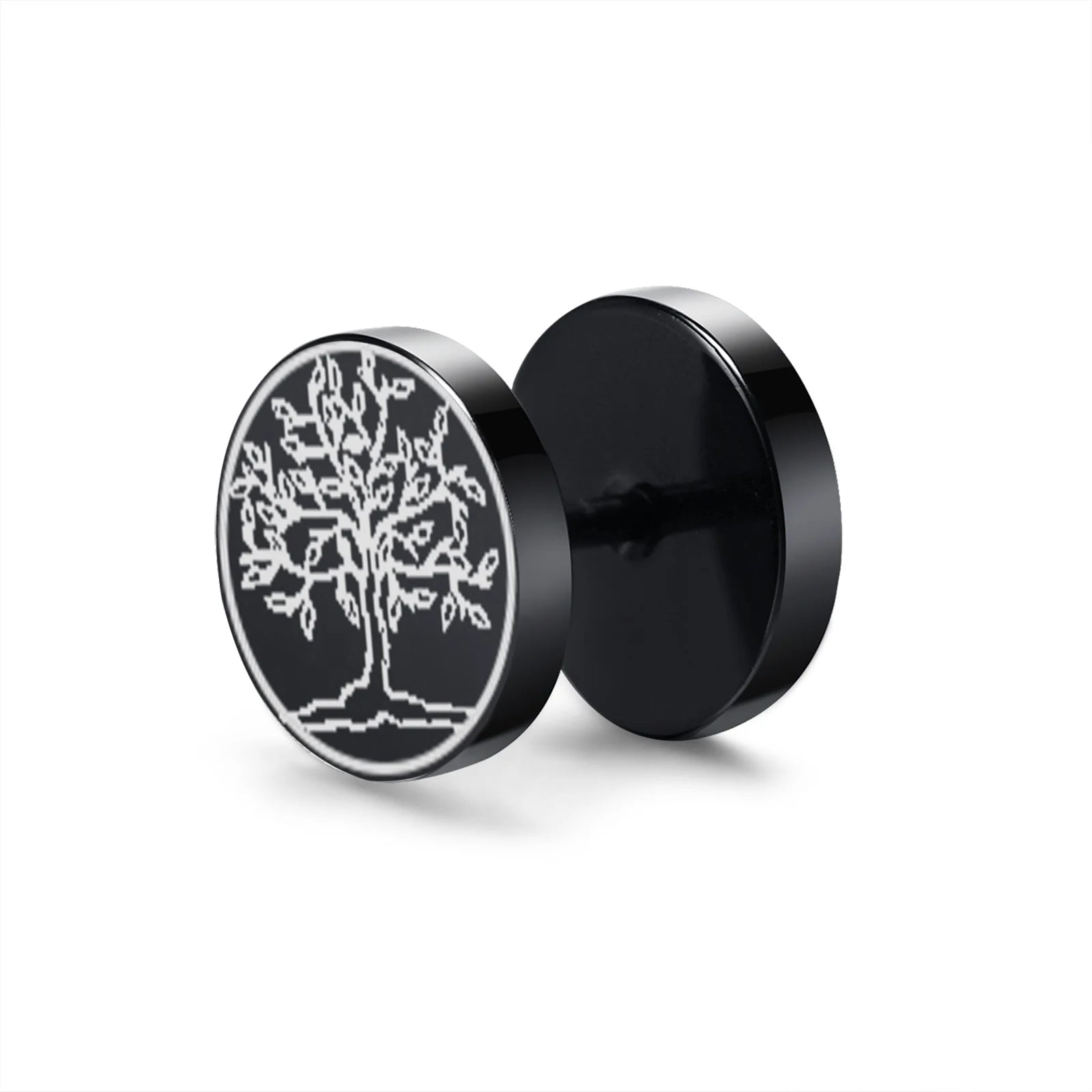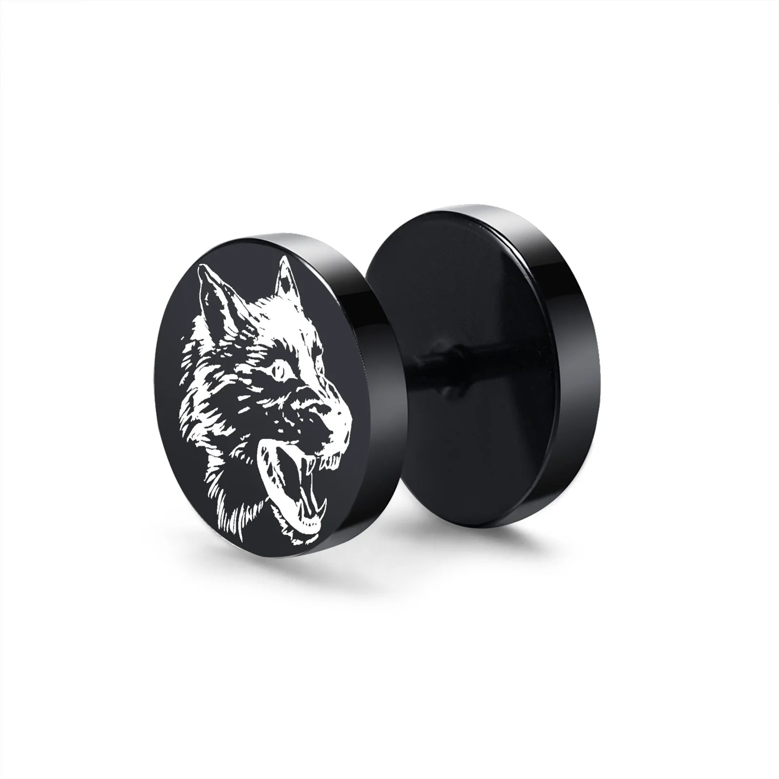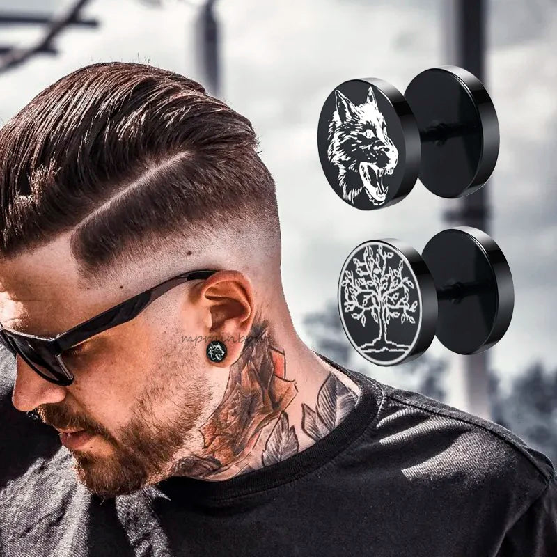 Street Hip Hop Rock Wolf Tree of Life Stud Earings for Men, Stainless Steel