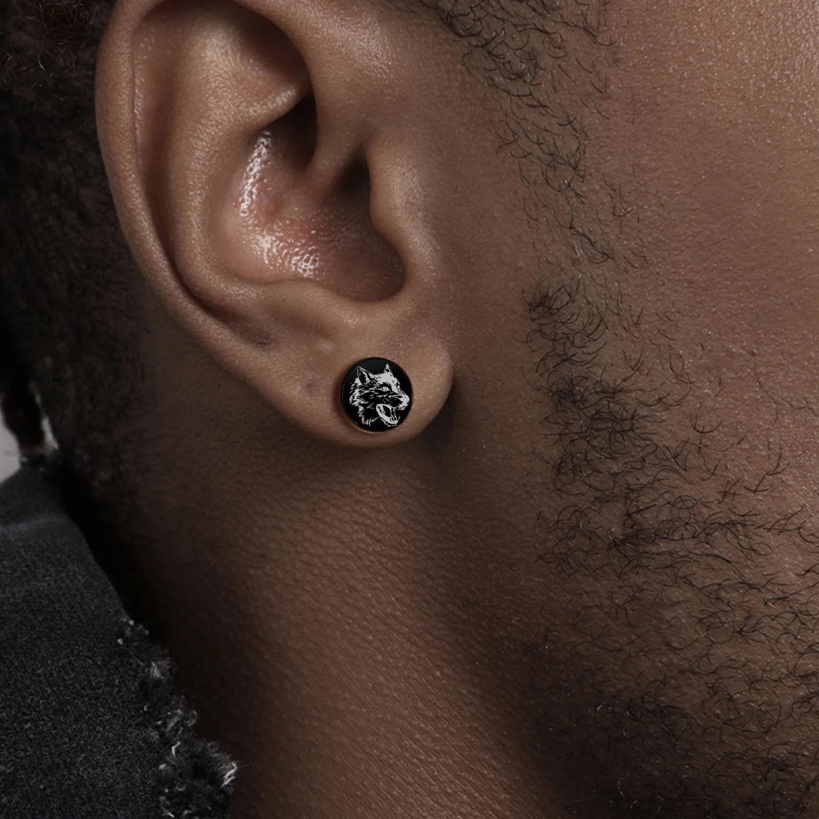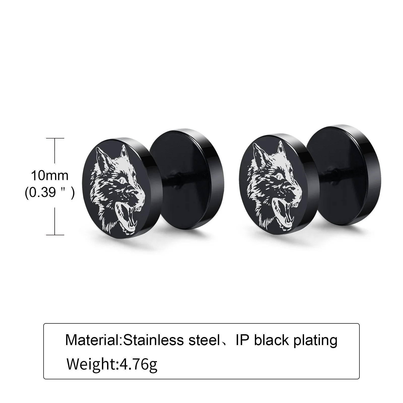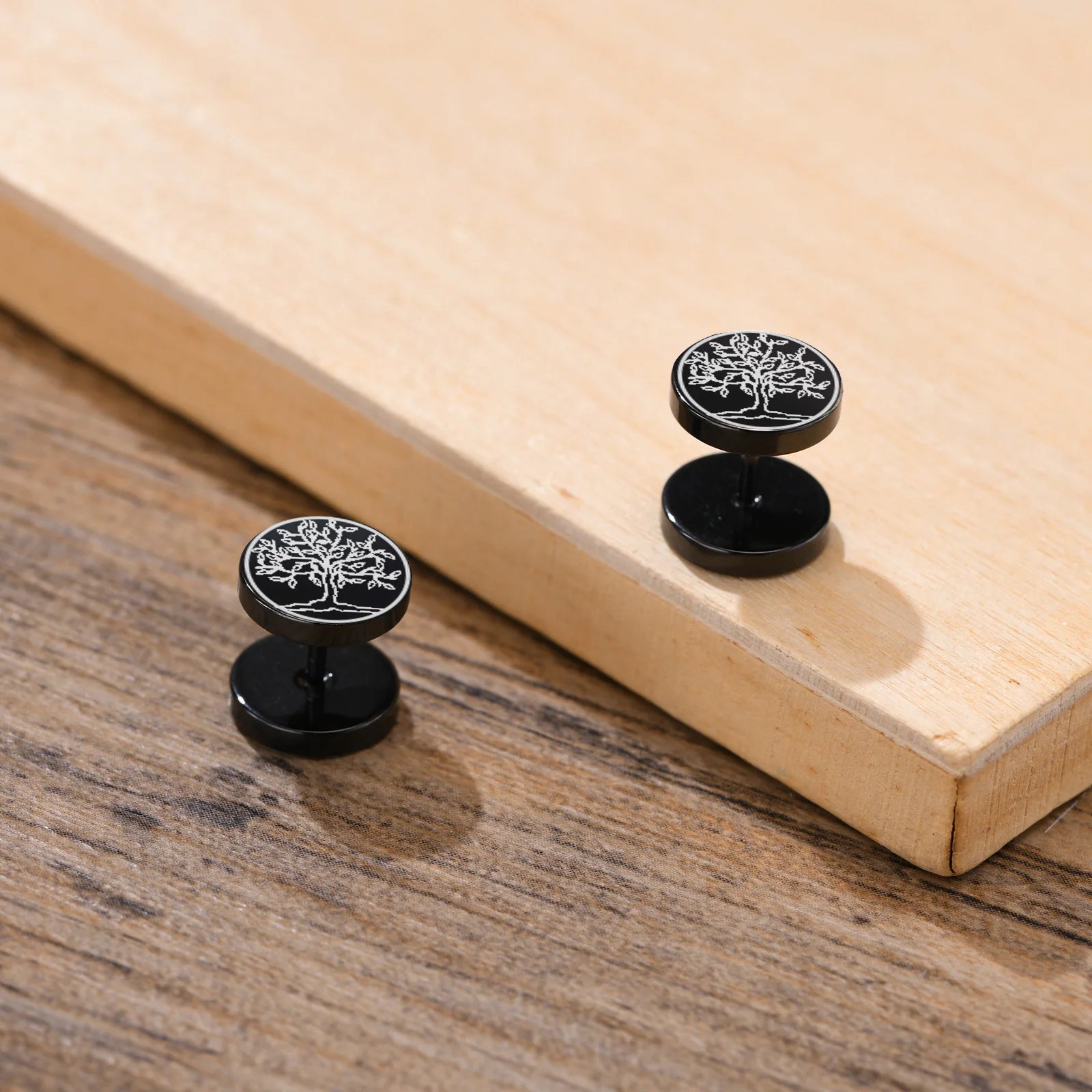 Street Hip Hop Rock Wolf Tree of Life Stud Earings for Men, Stainless Steel