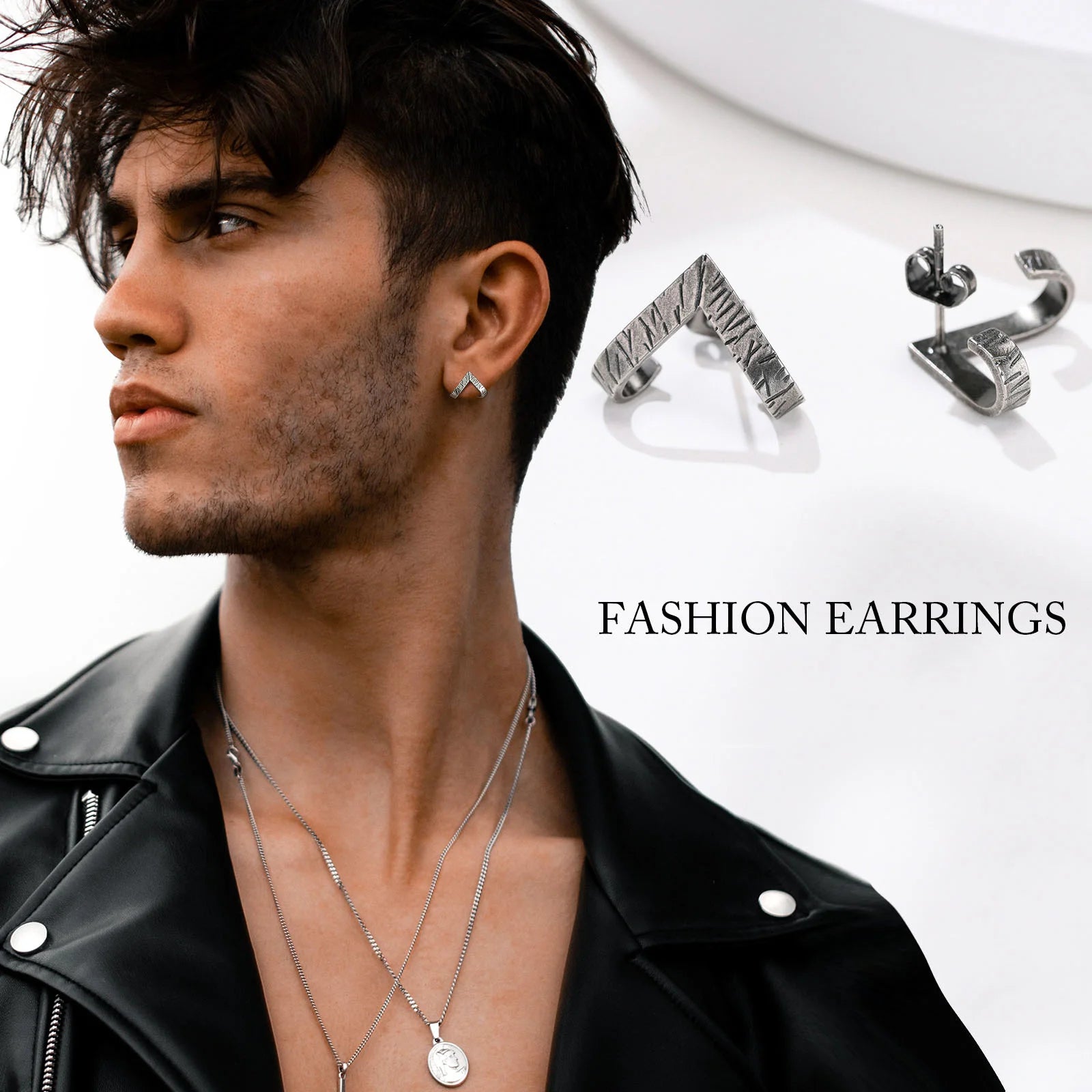 Stud Earrings, Men Wrap Earring, Stainless Steel Geometric Triangle Earring