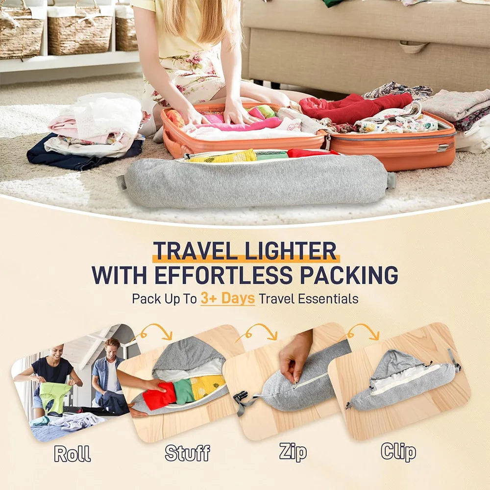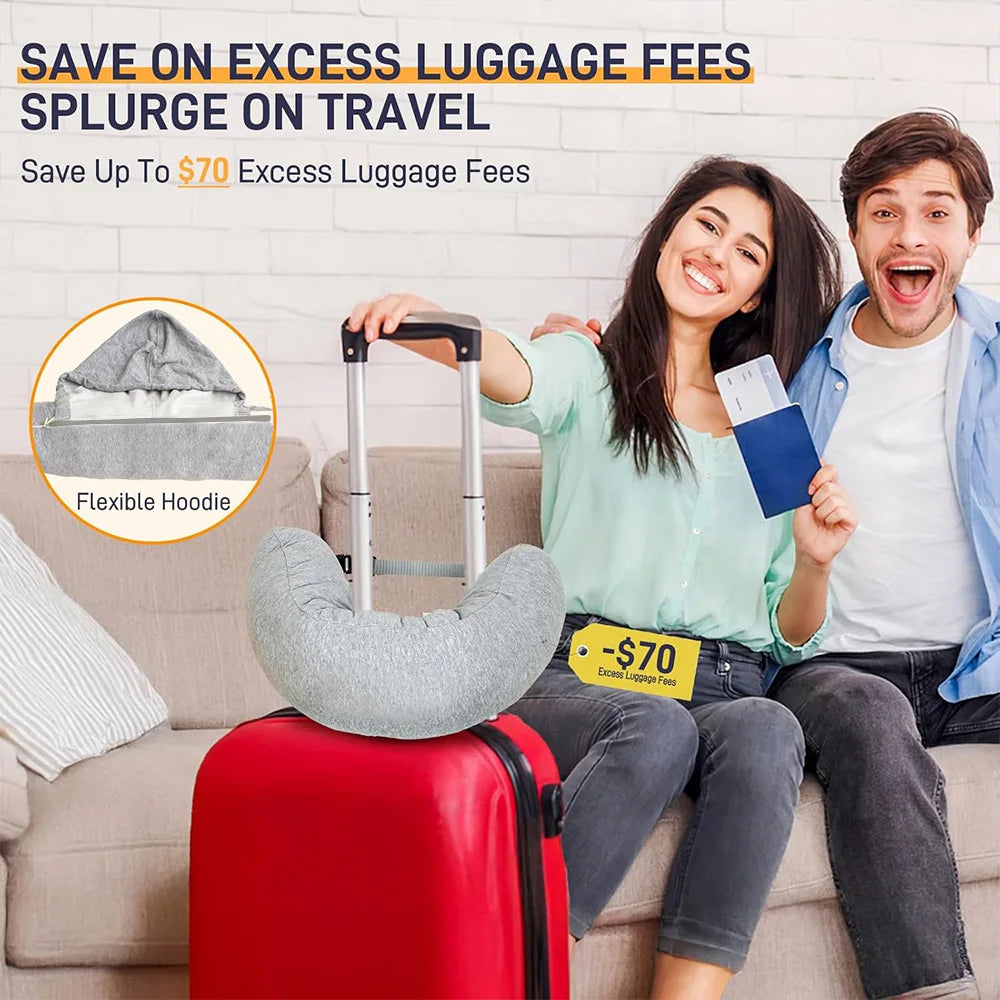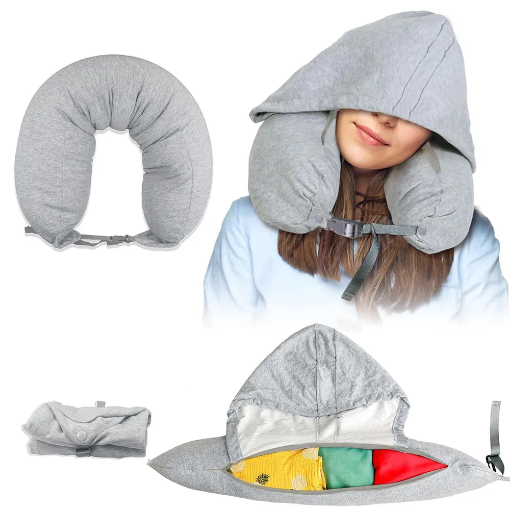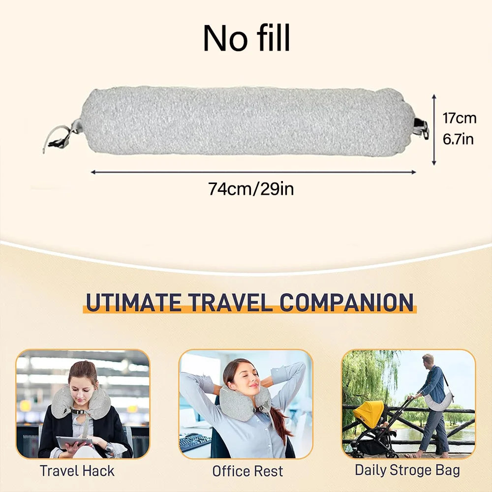 Travel Pillow With Storage Pouch, Adjustable Polyester Neck Support, Comforta...