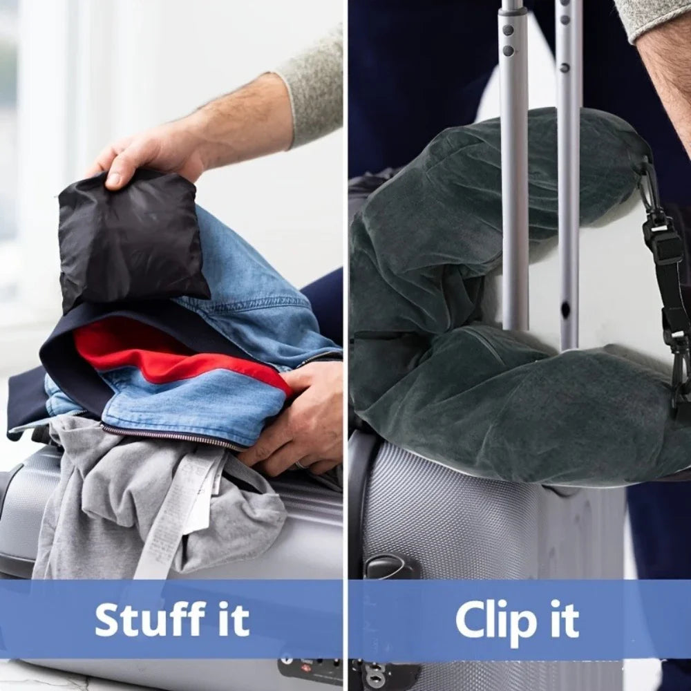 Travel Pillow With Storage Pouch, Adjustable Polyester Neck Support, Comforta...