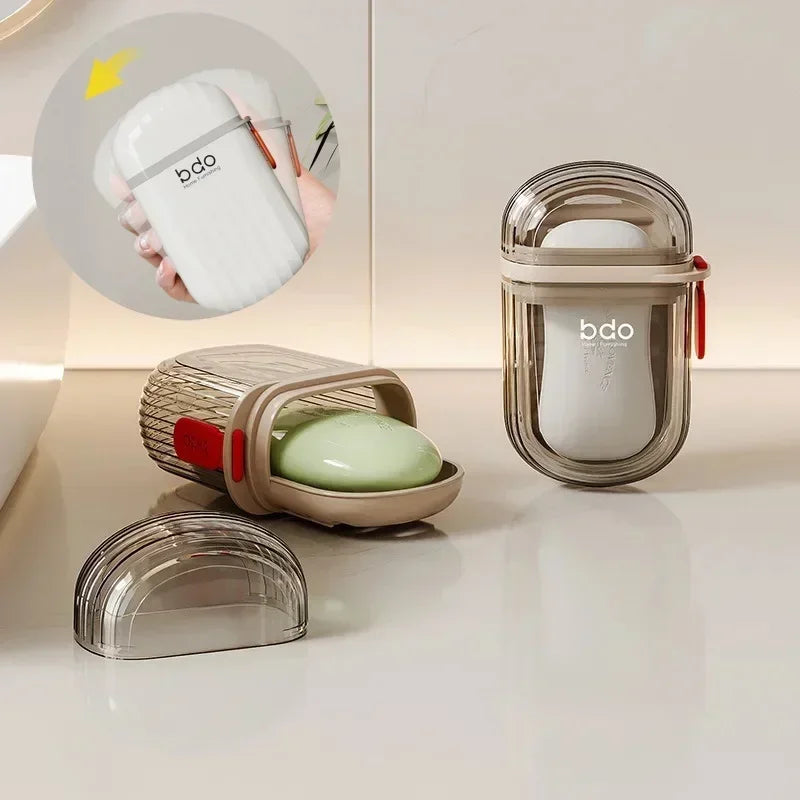 Travel Portable Soap Box with Lid Sealed and Drainable Small Soap Case