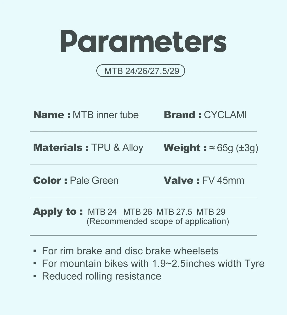 Ultralight Mountain Bike Inner Tube MTB 26 27.5 29 Inches Bicycle TPU Tire 45...