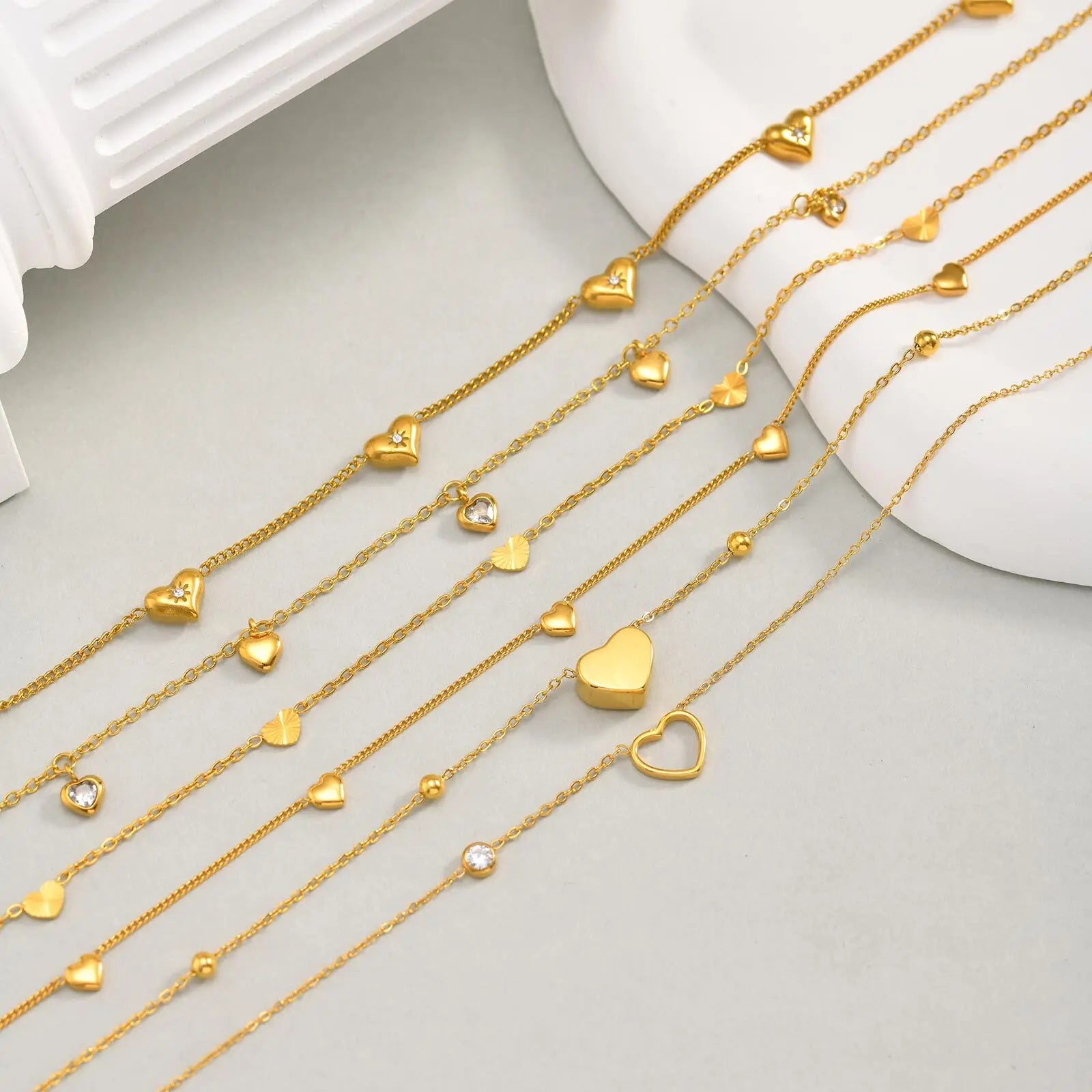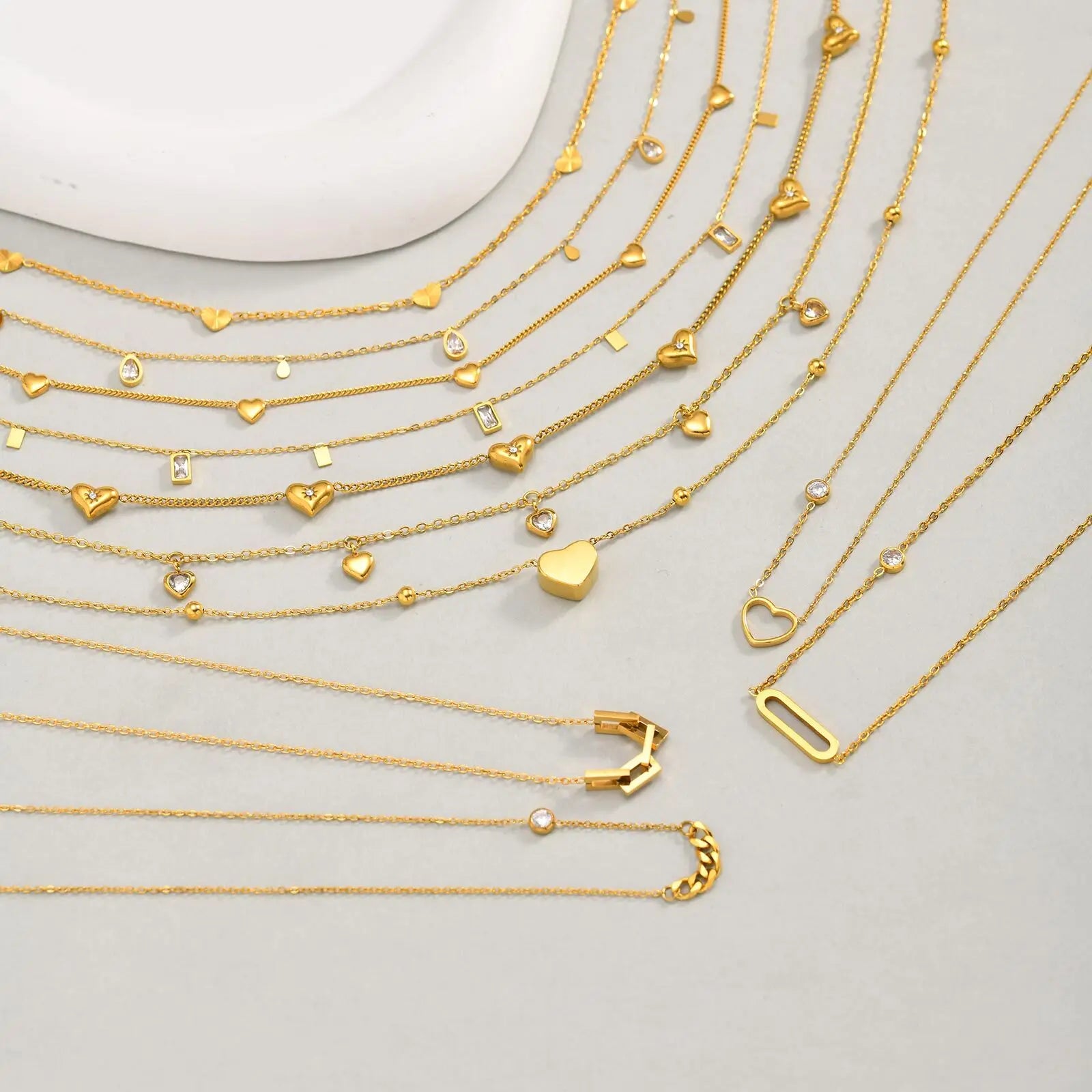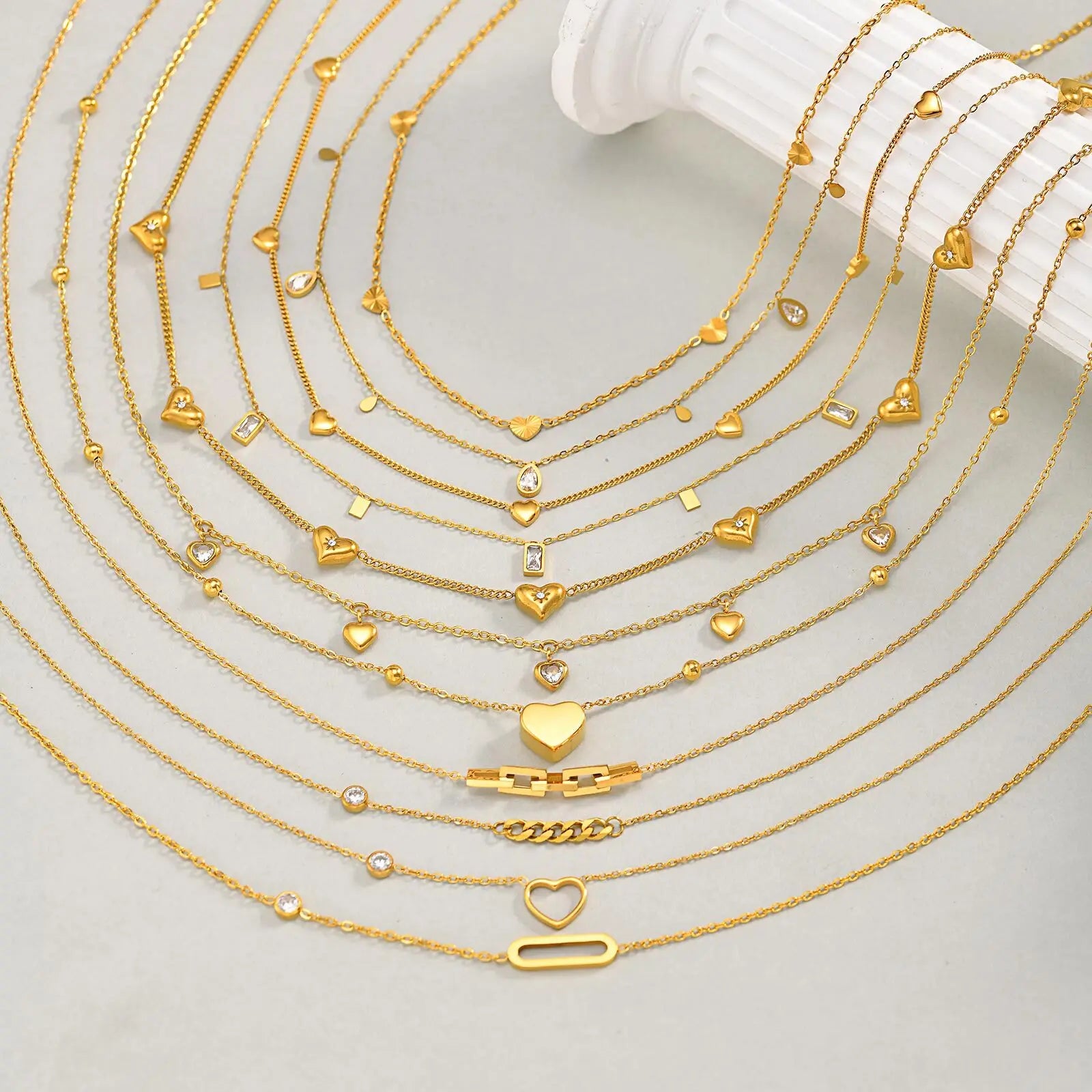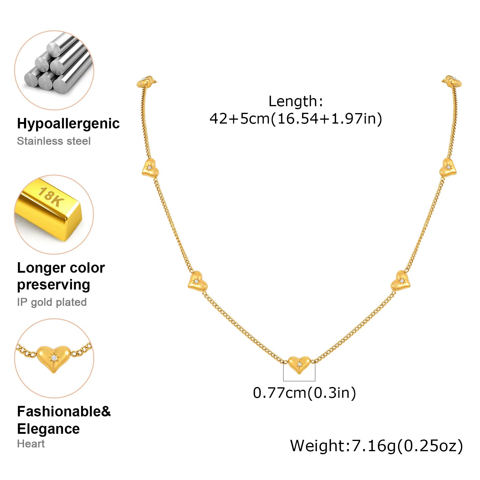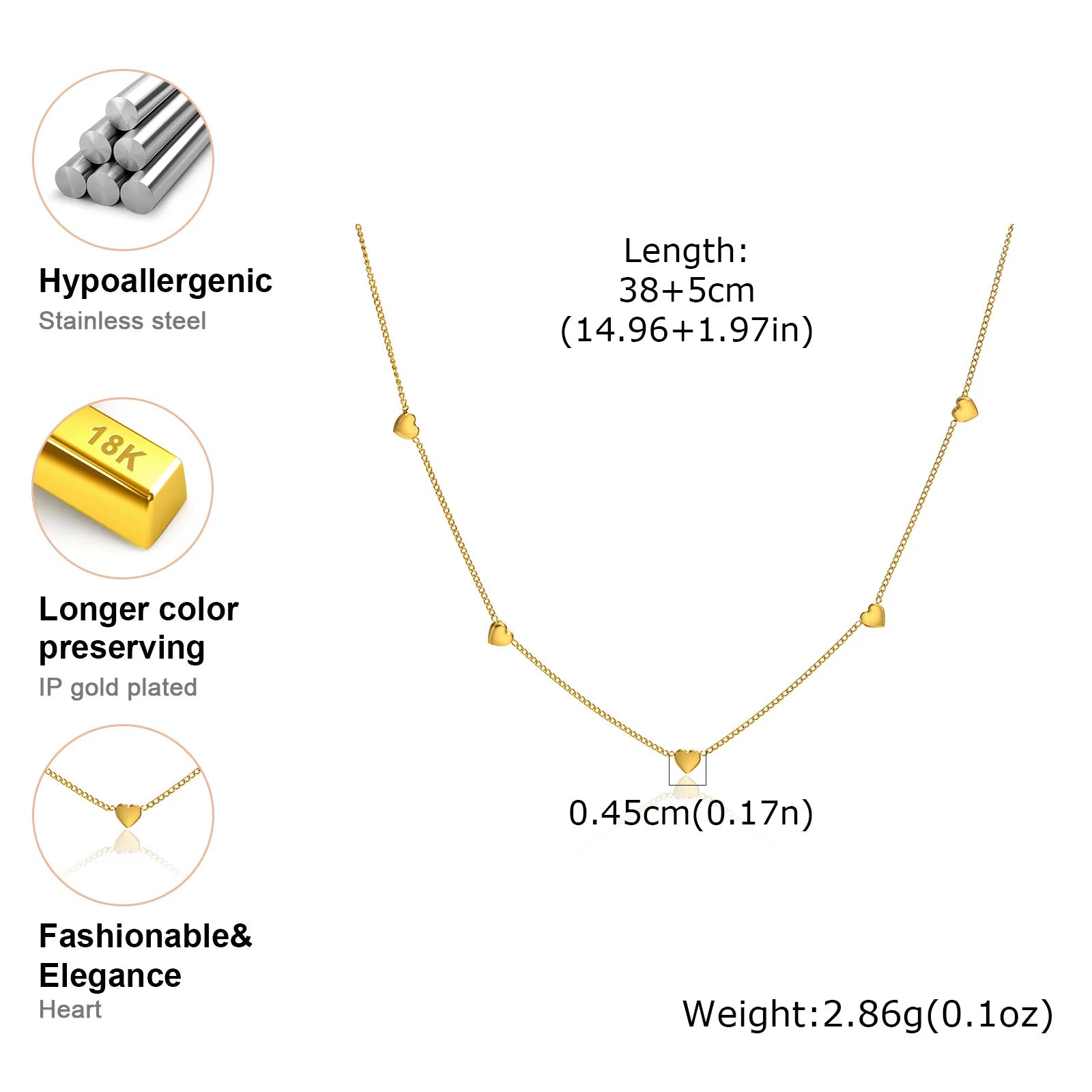Vnox Luxury Multiple Zircon Heart Pendants Collar Women's Stainless Steel Chain Necklace Statement Love C...
