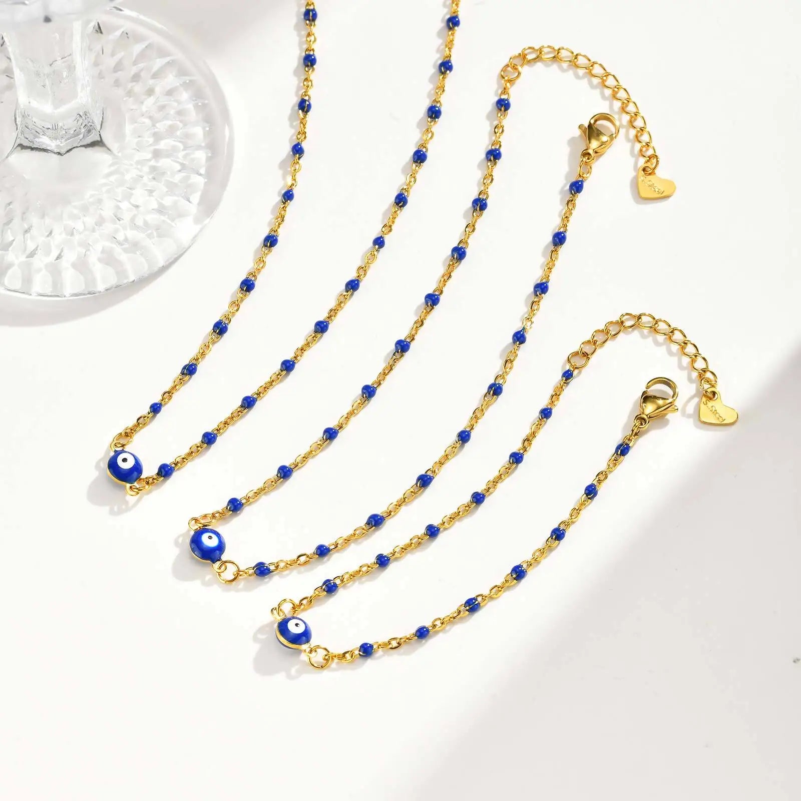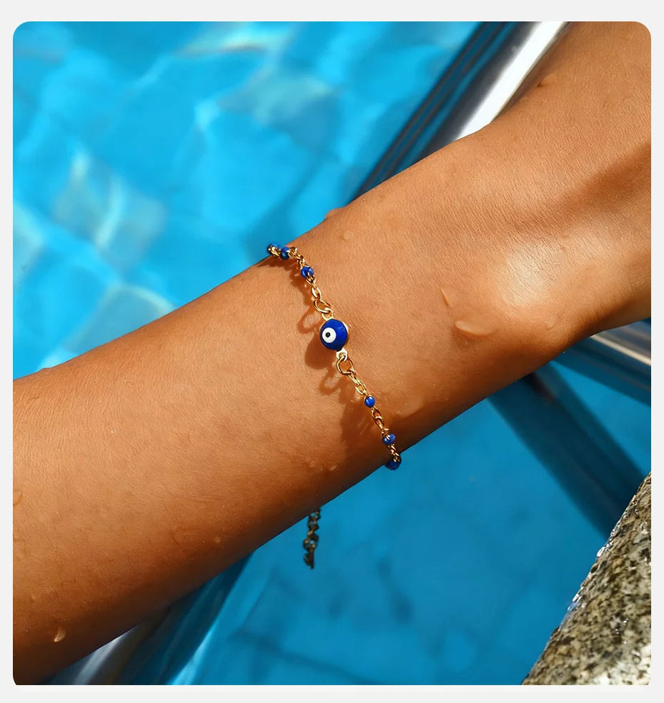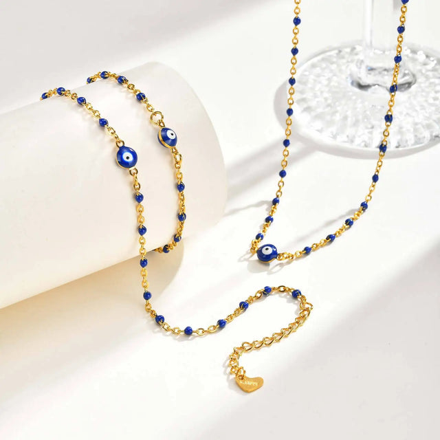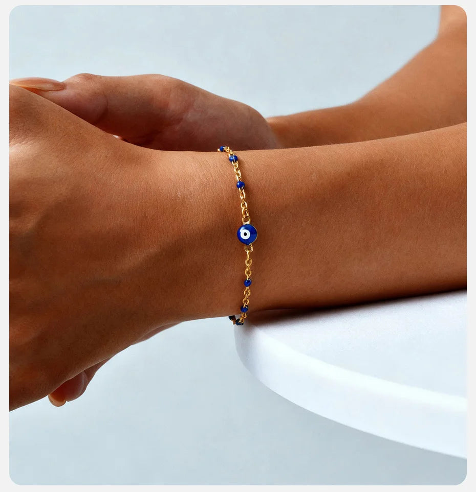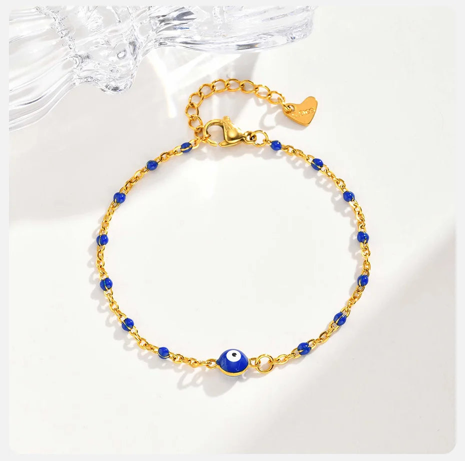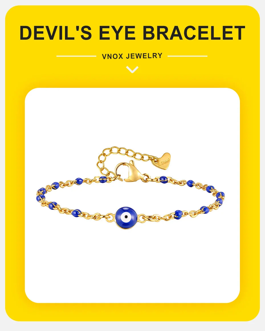 Vnox Retro Devil's Eye Stainless Steel Small Beads Chains For Women Three Lengths Adjustable Size Bracel...
