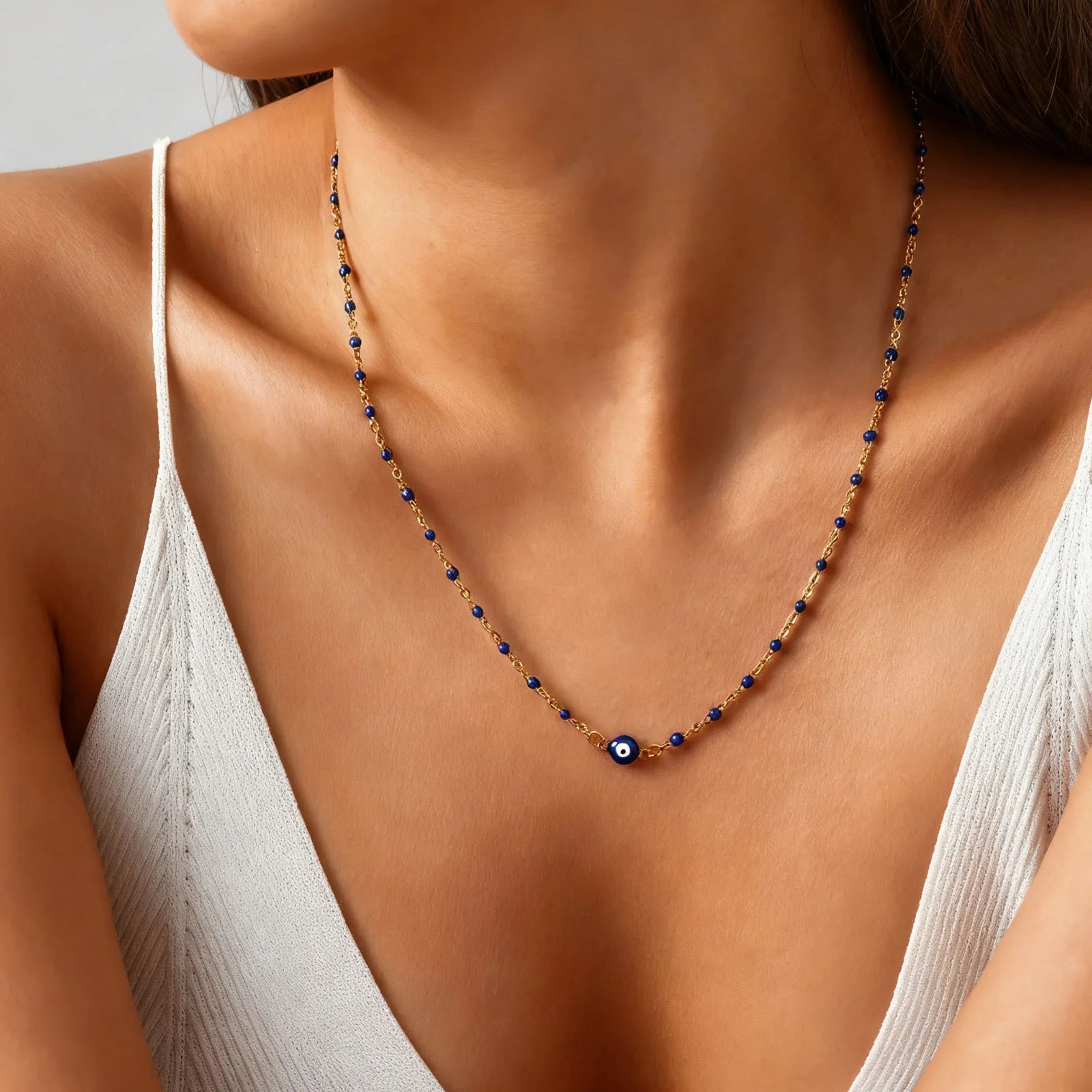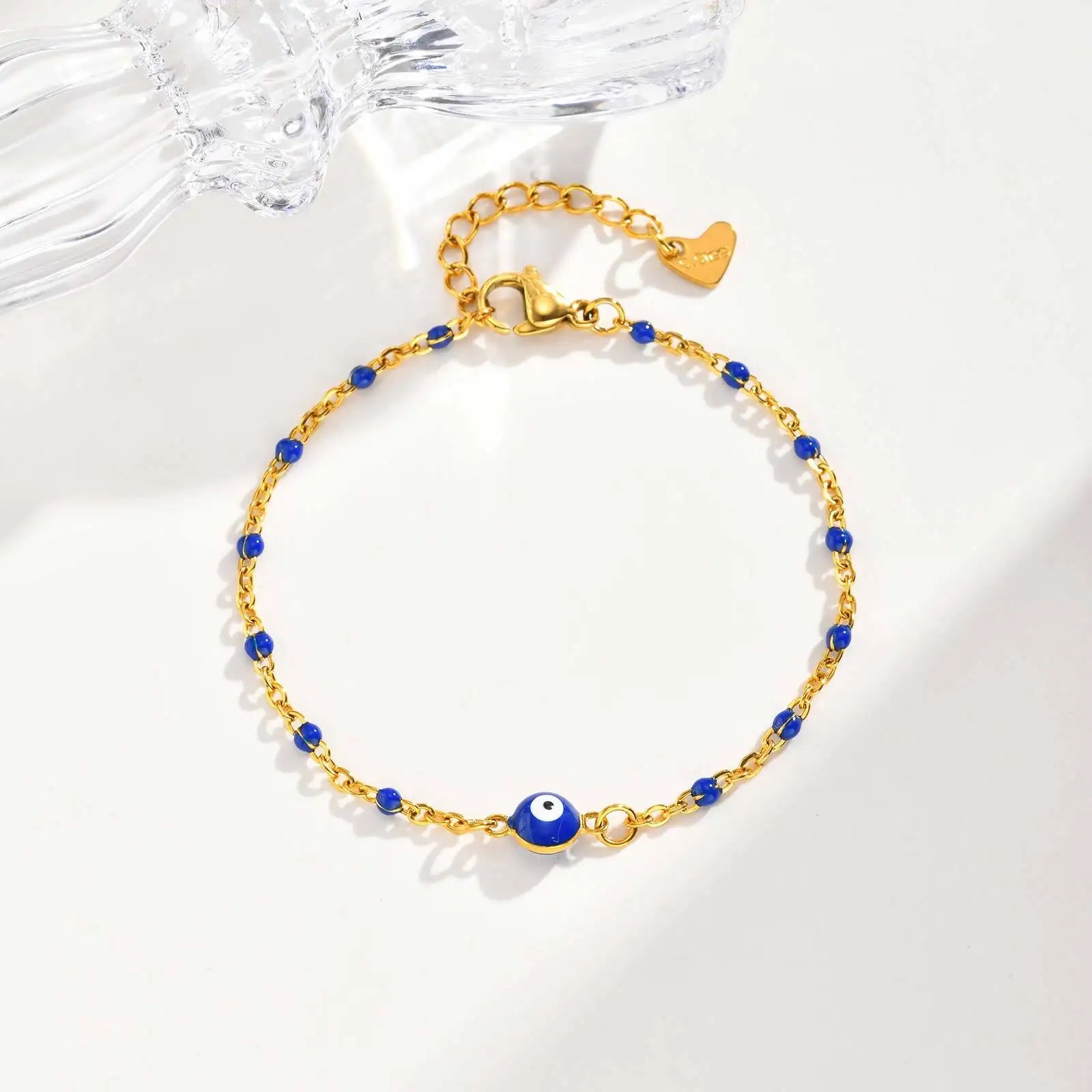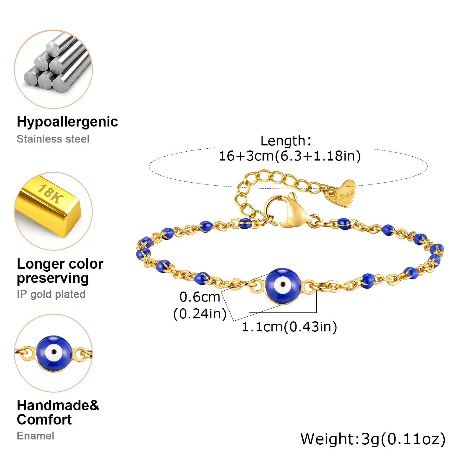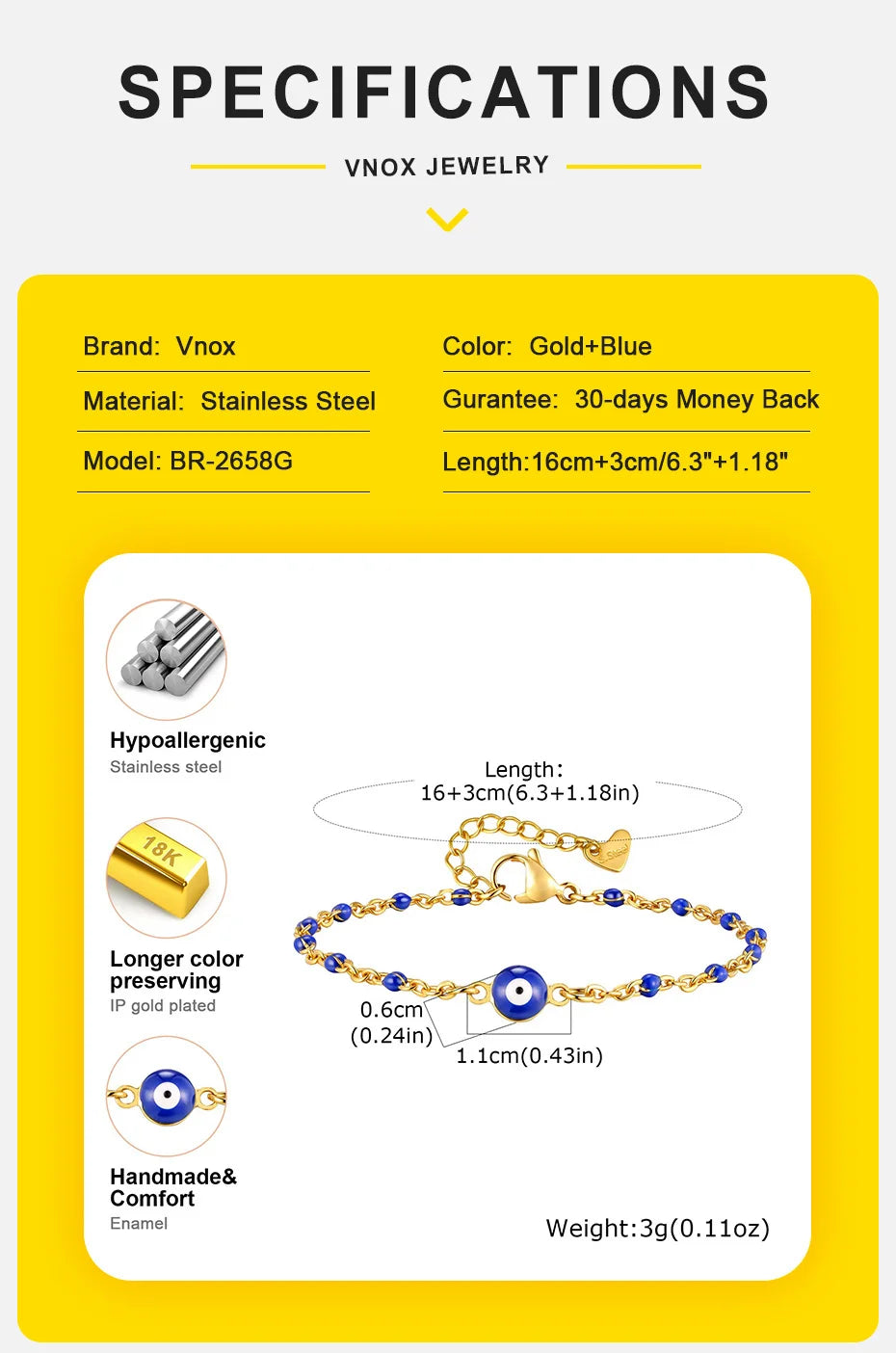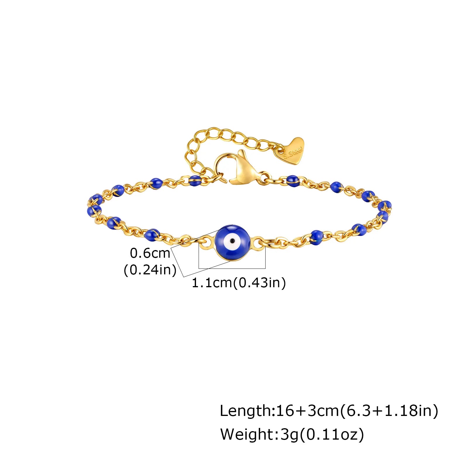 Vnox Retro Devil's Eye Stainless Steel Small Beads Chains For Women Three Lengths Adjustable Size Bracel...
