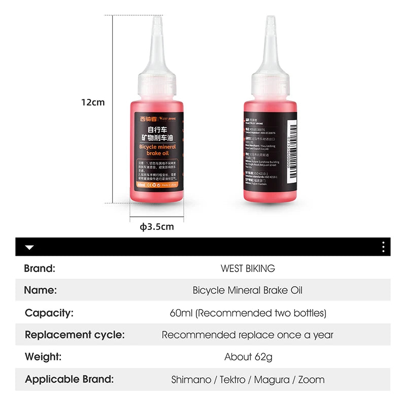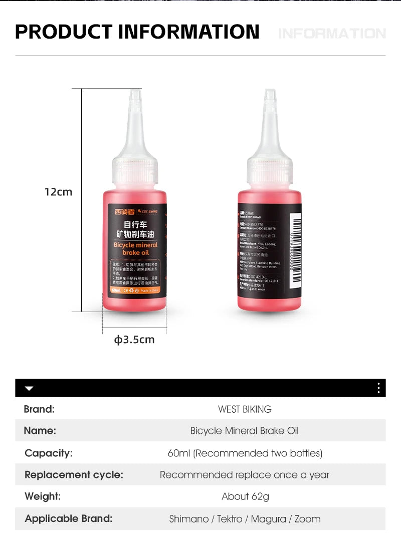 West Biking 1 2Pcs 60ml Bicycle Mineral Brake Oil System Fluid Anti rust Oil ...