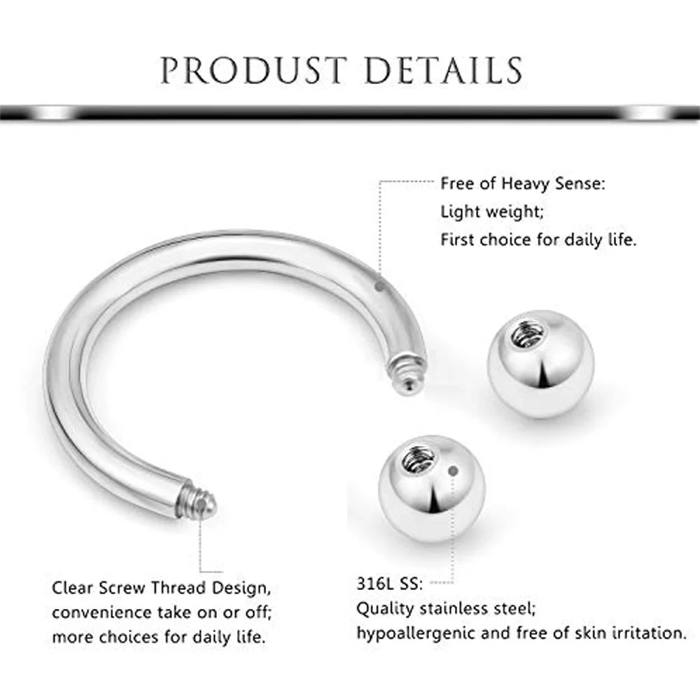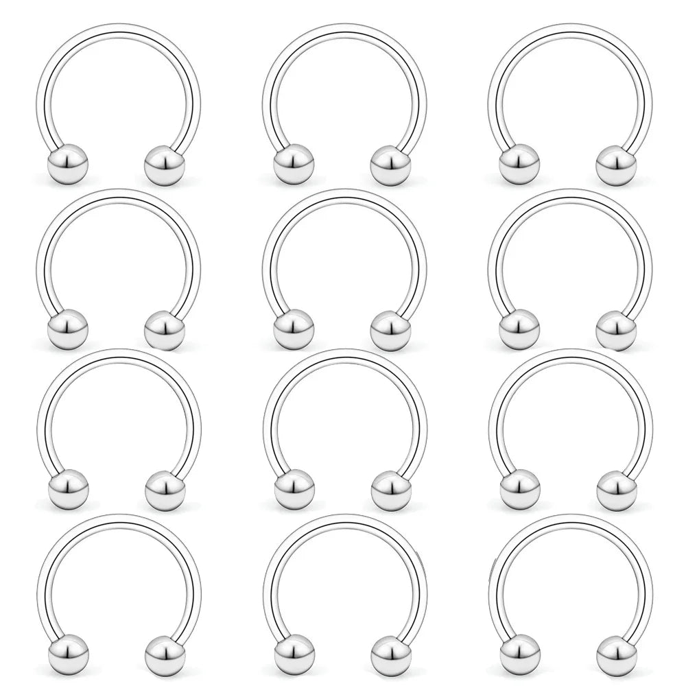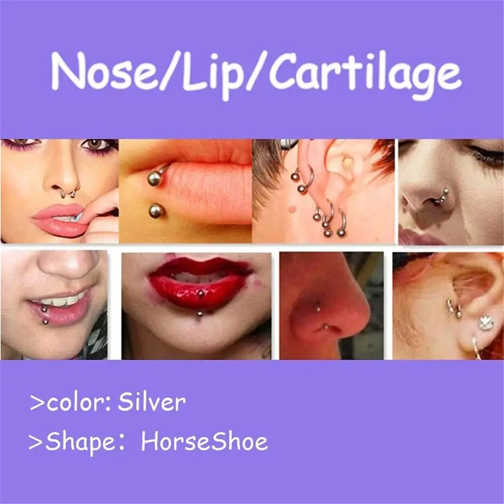 Wholesale 100PCS/Lot Surgical Steel Nose Ring Hoop Nostril Piercing Septum Ring Horseshoe Fake Nose Ring Body Jewelry 20G 16G
