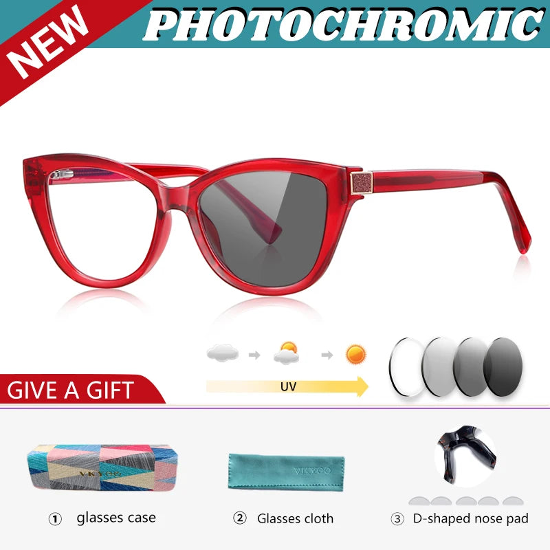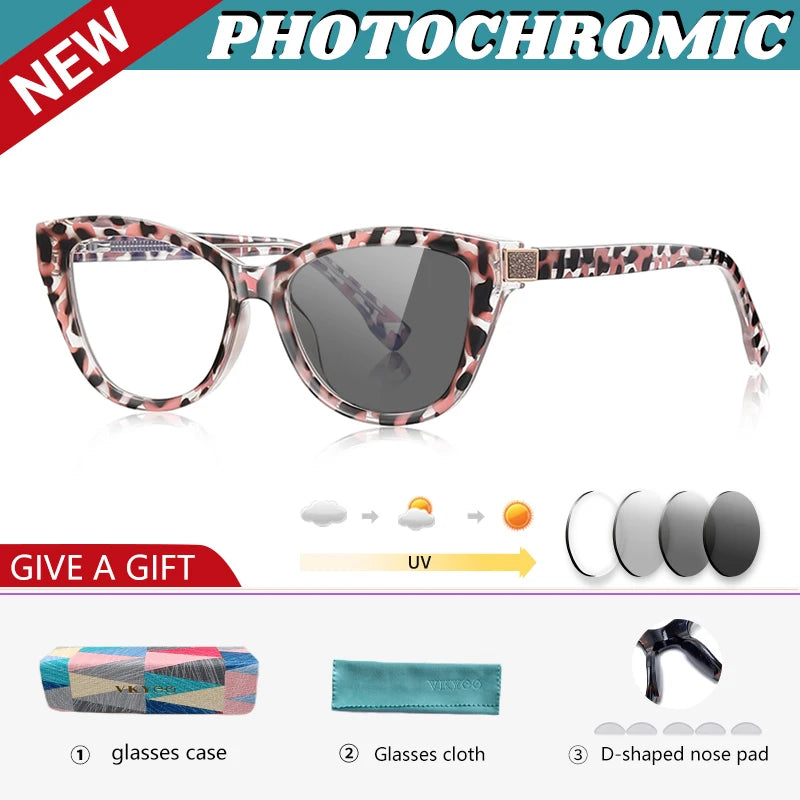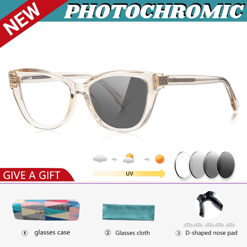 VKYEE New Simple Butterfly Fashion Design Women's Anti-Blue Light Reading Glasses Photochromic Customizab...