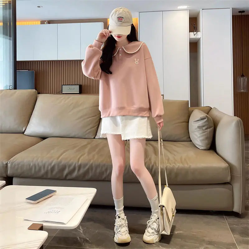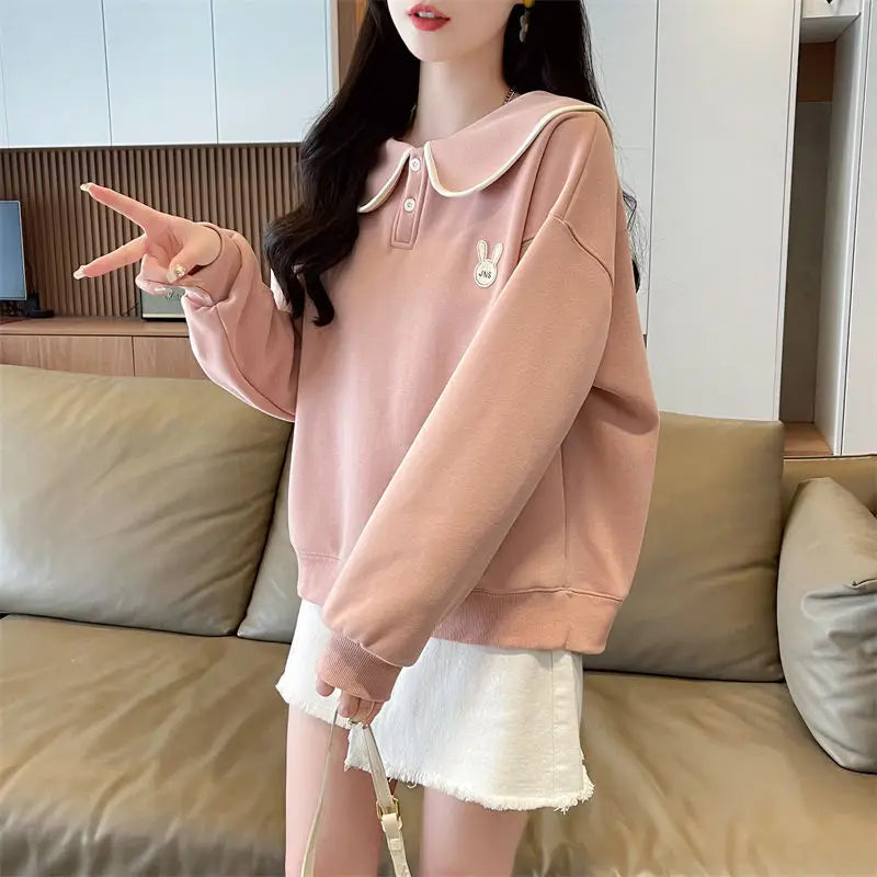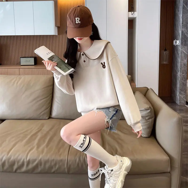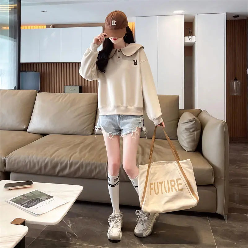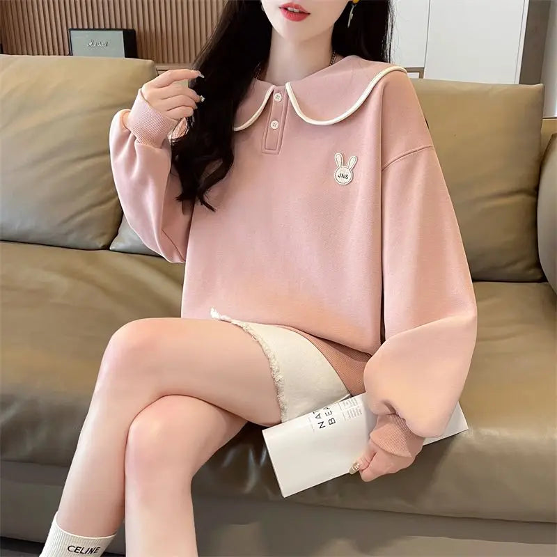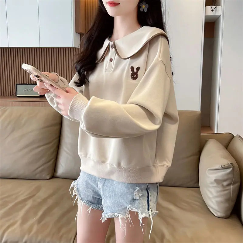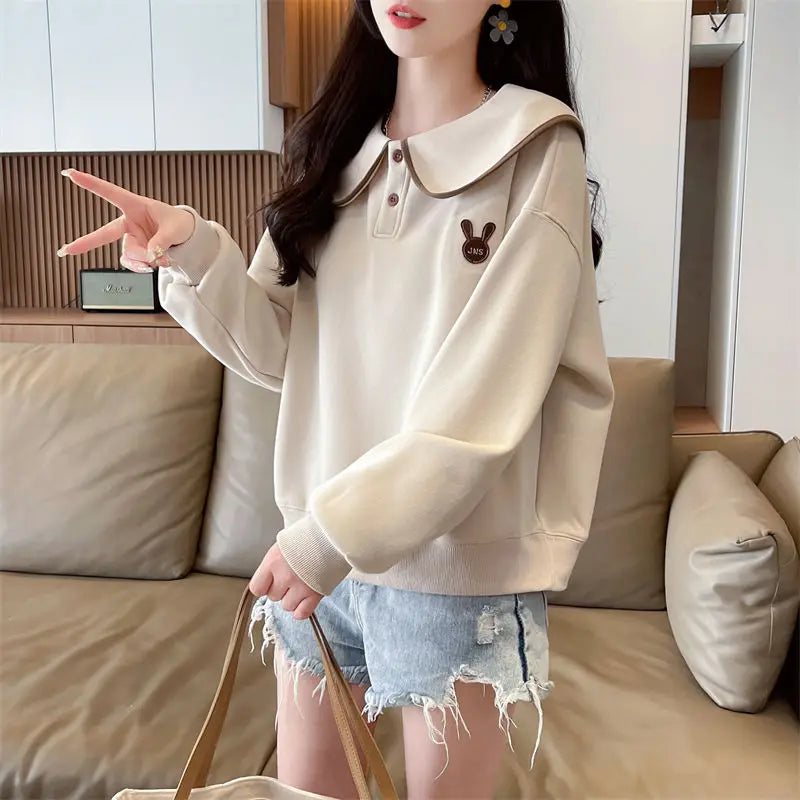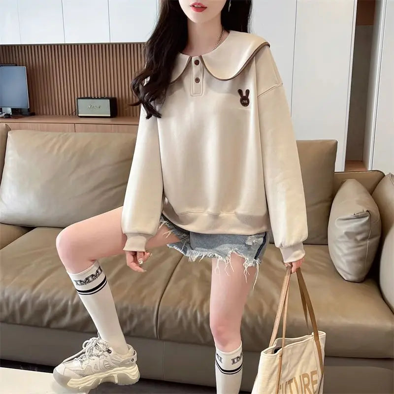 Women s Spring and Autumn Style Doll Collar Design Wide Version Age reducing ...