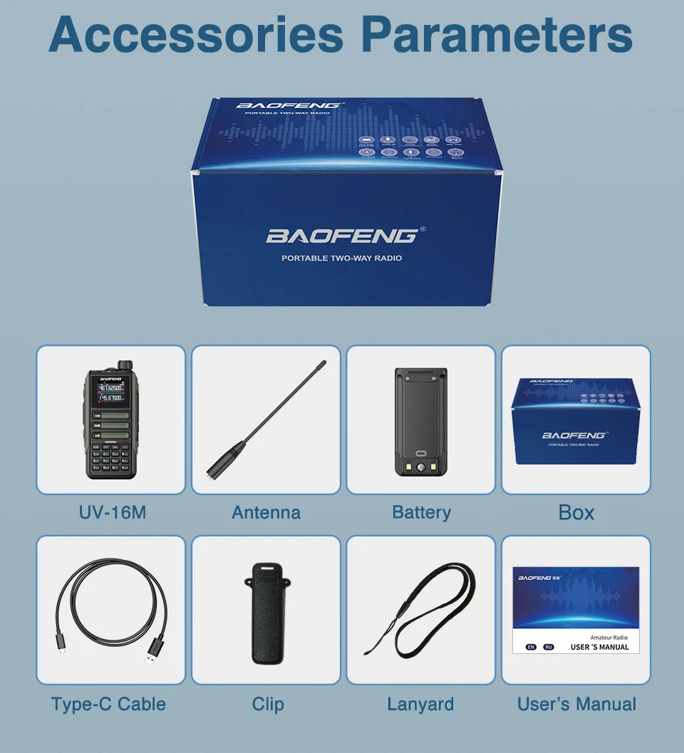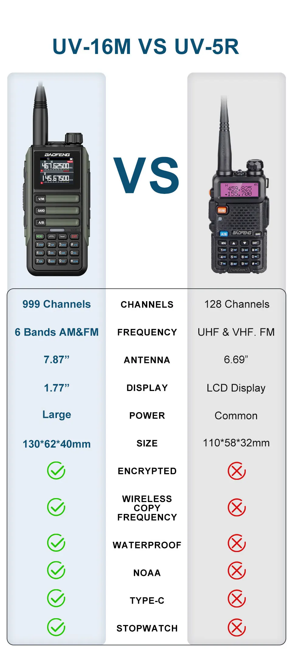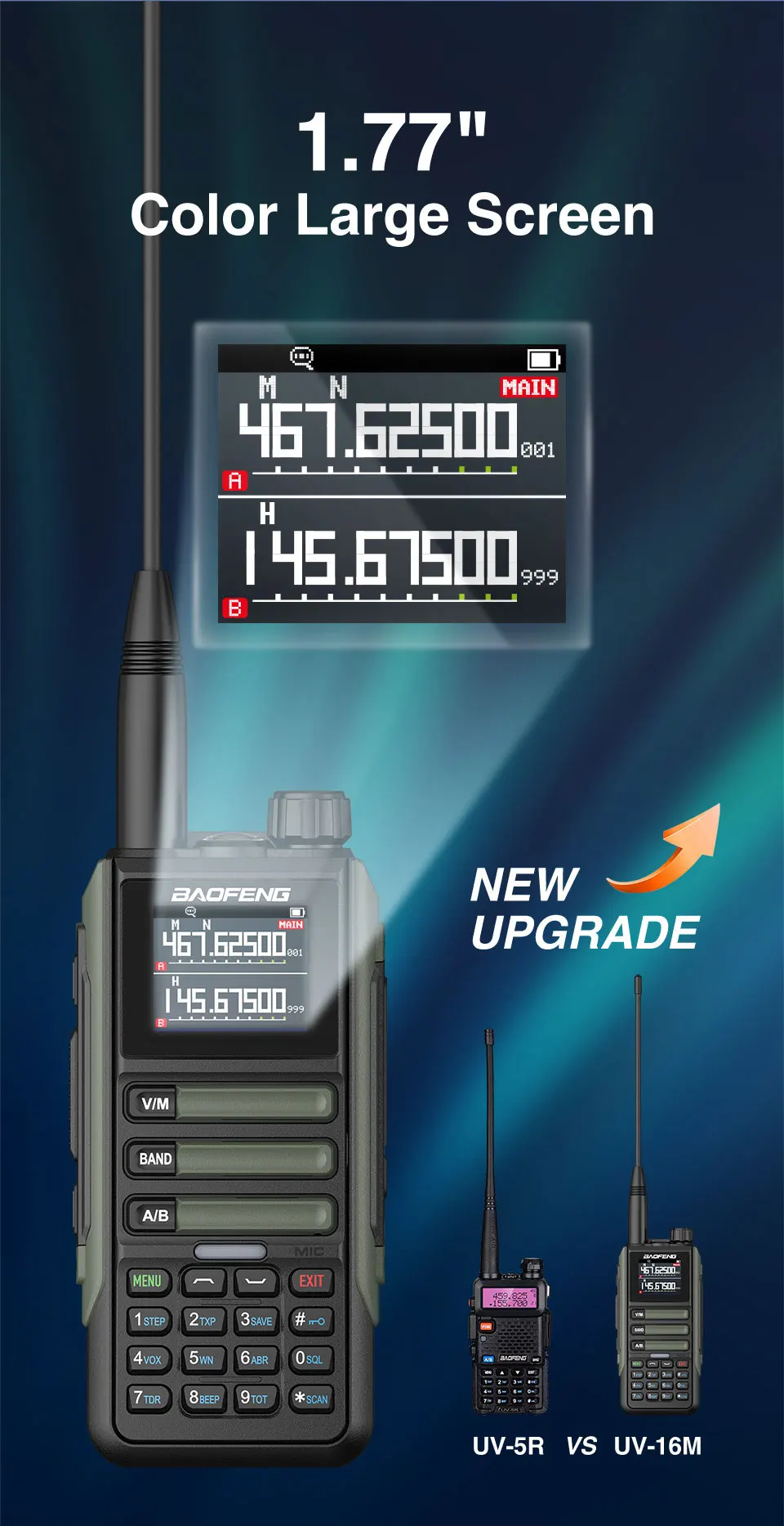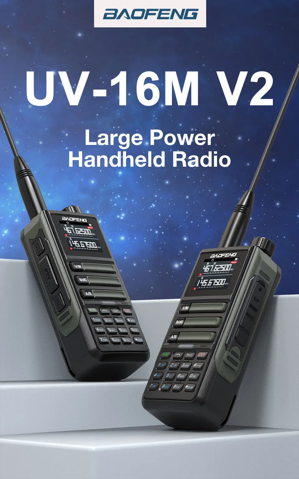 2025 Upgrade Baofeng UV16M V2 Walkie Talkie 15W High Capacity AM FM 2-Way Radio Full Band LCD 999CH Frequency Copy NOAA Noise Reduce