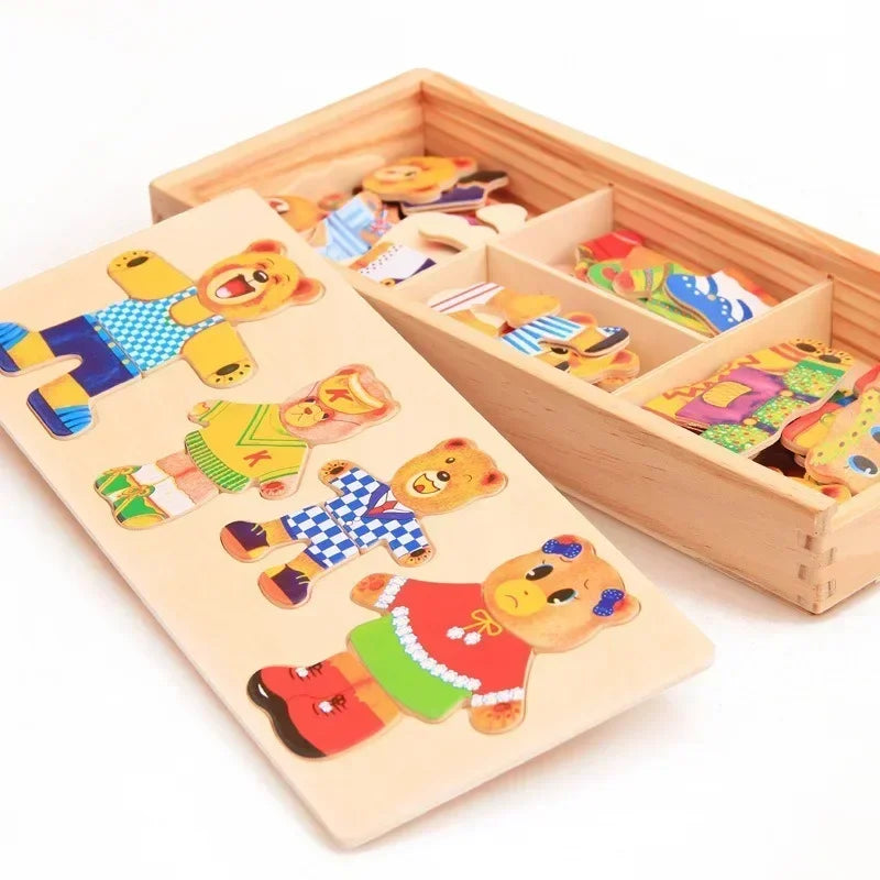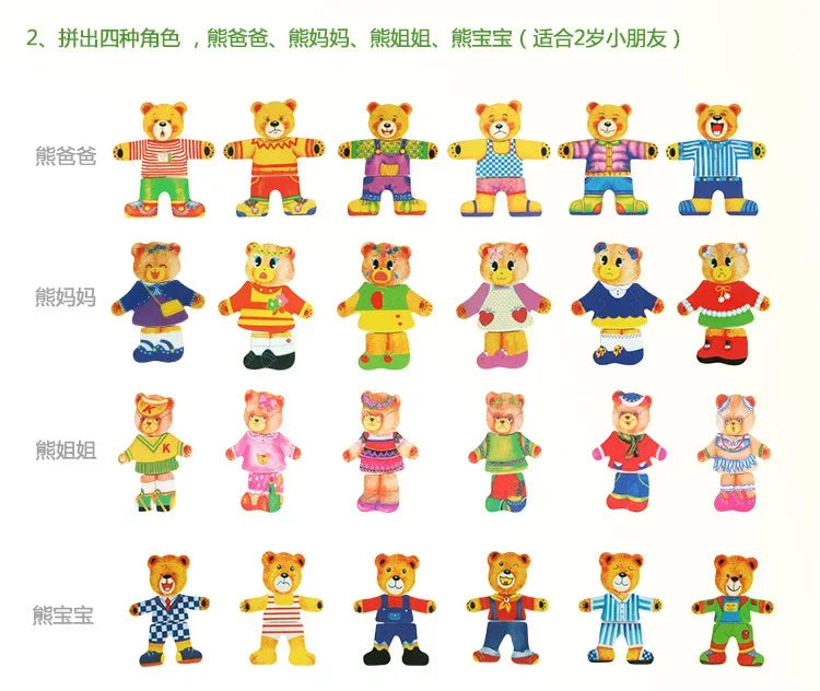 Little Bear Change Clothes Children's Early Education Wooden Jigsaw Puzzle Dressing Game Baby Puzzle Toys...