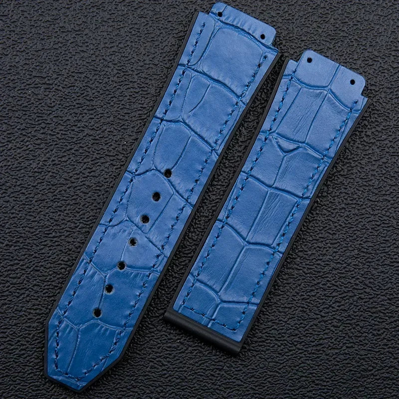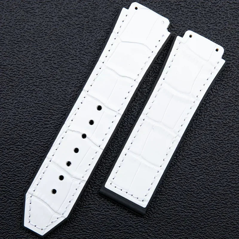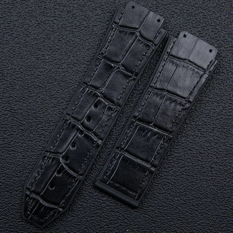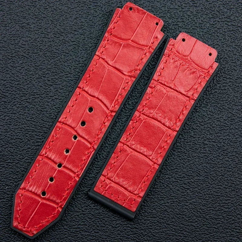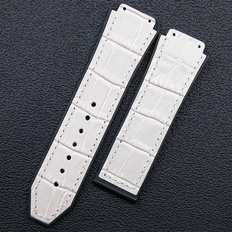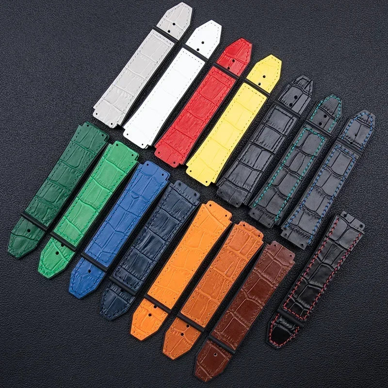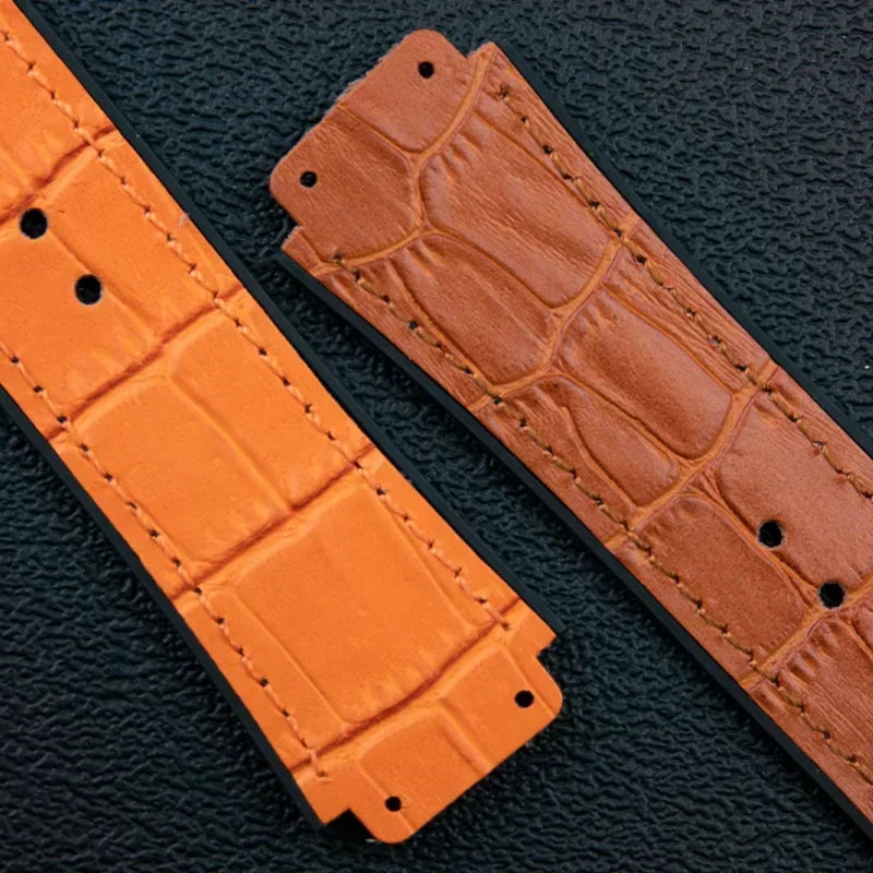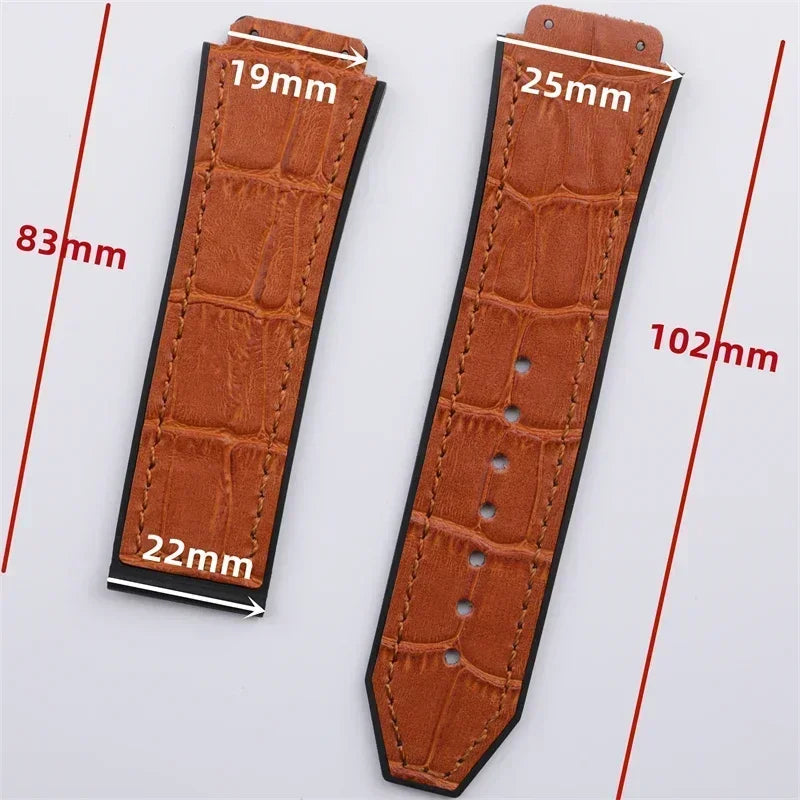 25x19mm Leather Bamboo Watchband Convex End For Hublot Strap For Classic Fusi...