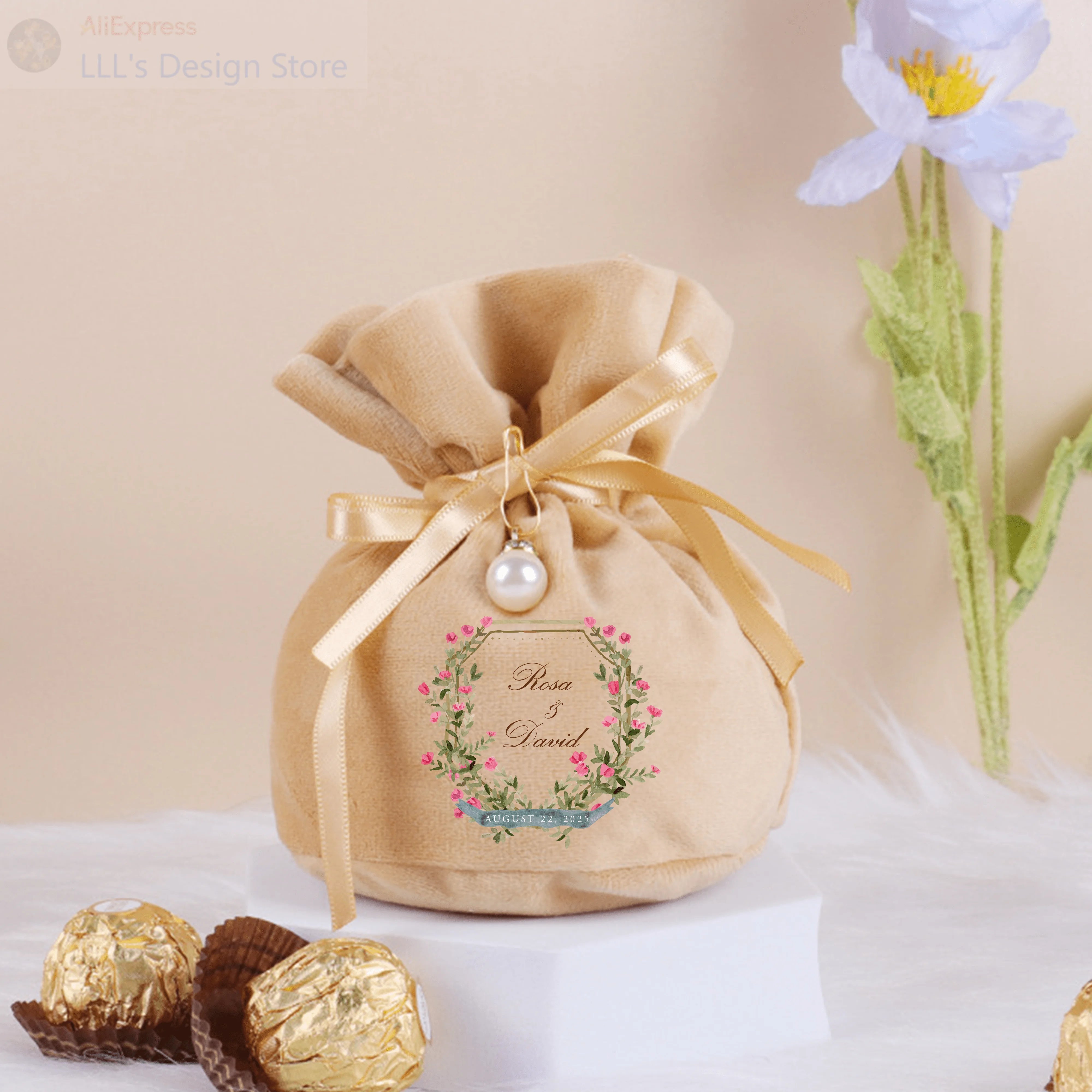 5/10/50PCS Custom Velvet Pouch Party Gift Bags Wedding Favor Bags For Guest Baby Shower Favor Bag Velvet ...