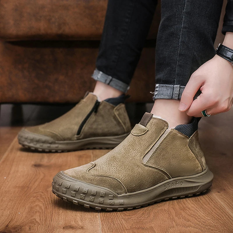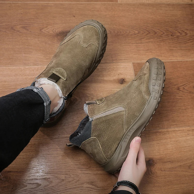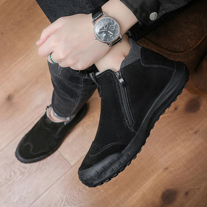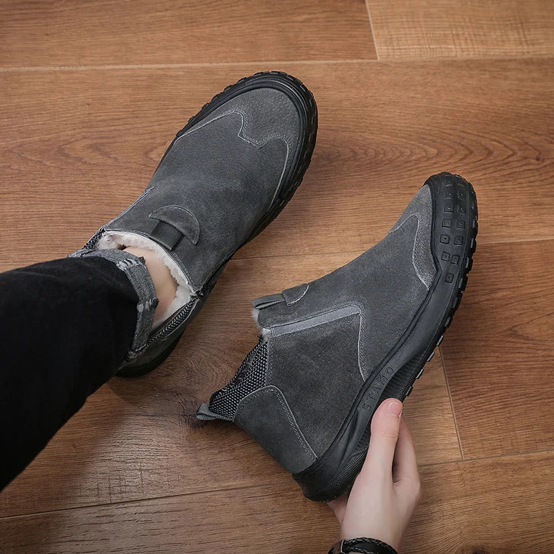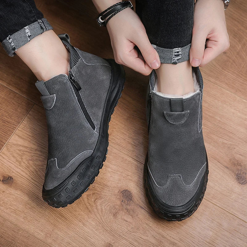 Classic Men s Leather Casual Shoes Straps High Top Shoes Outdoor winter cotto...