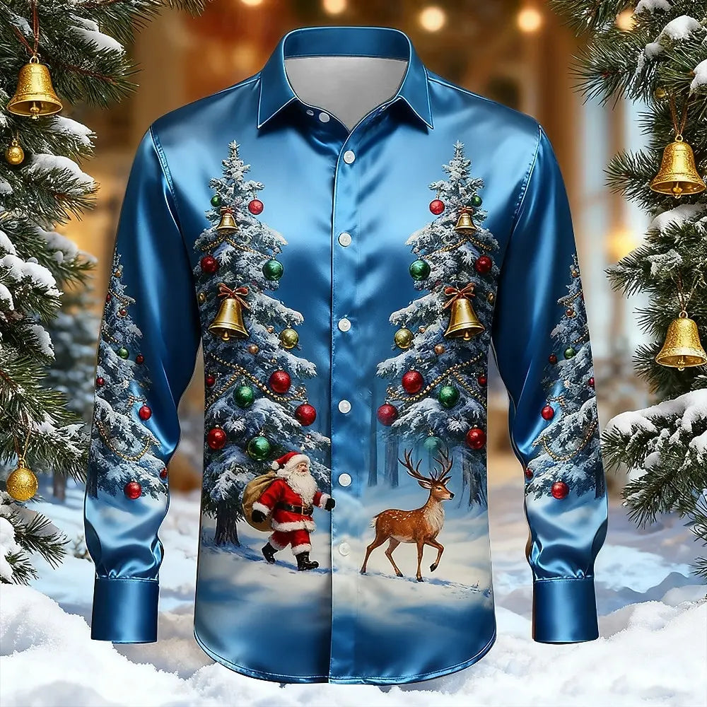 Men s Santa Claus Christmas Tree Snowflake Shirt Dress Shirt Long Sleeve Fash...