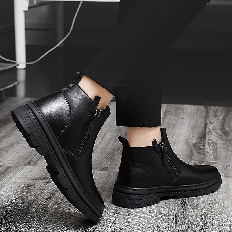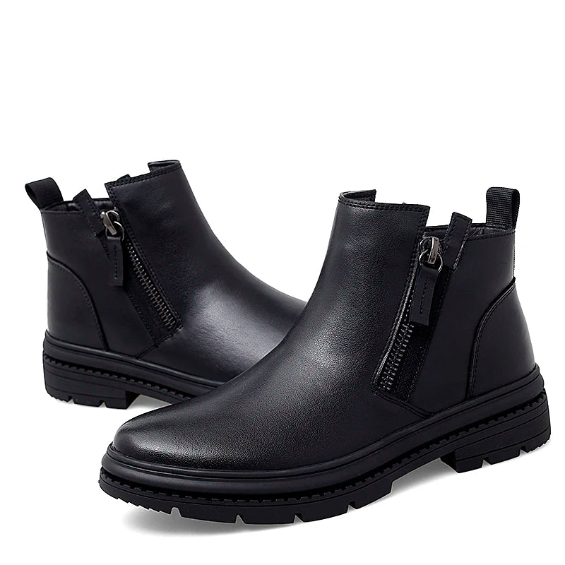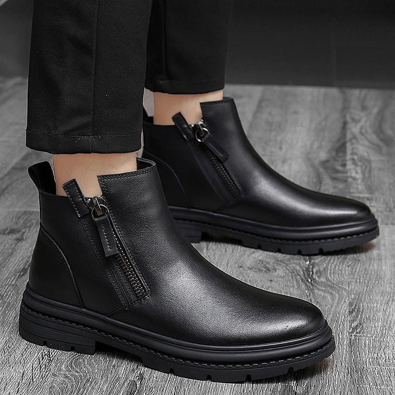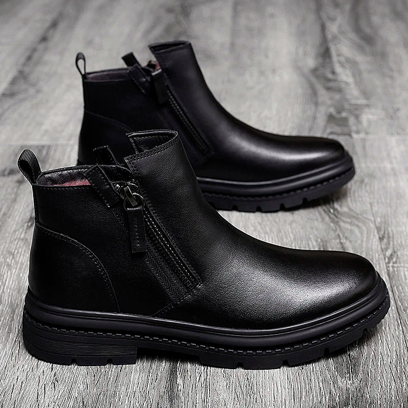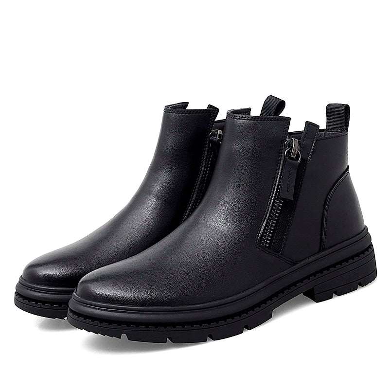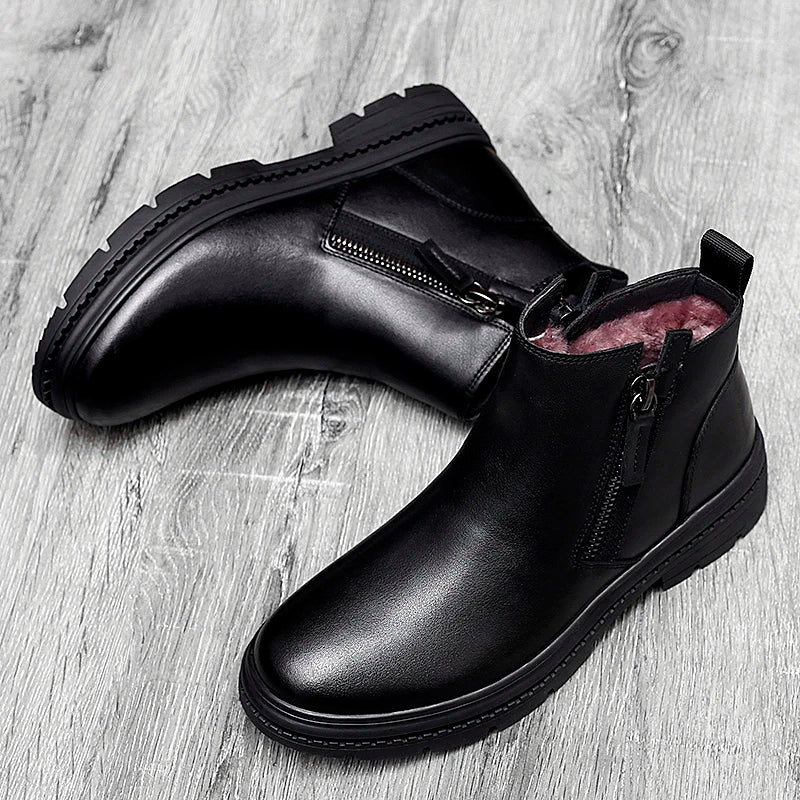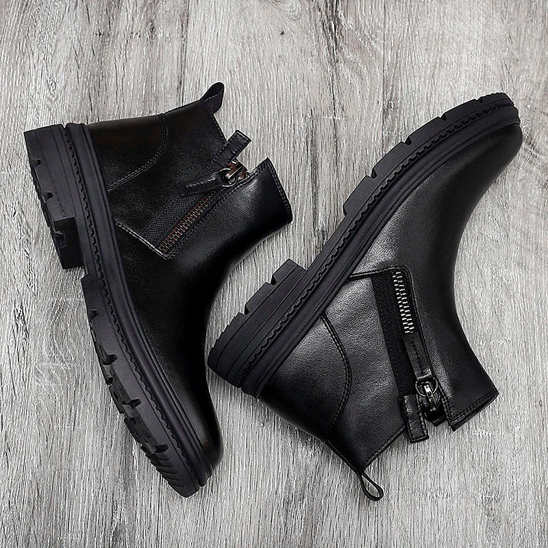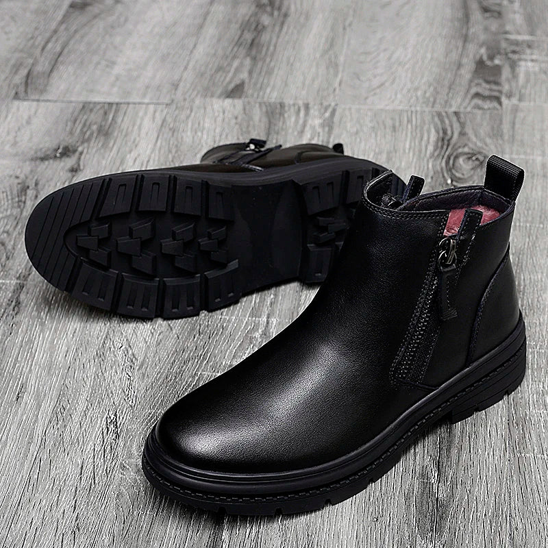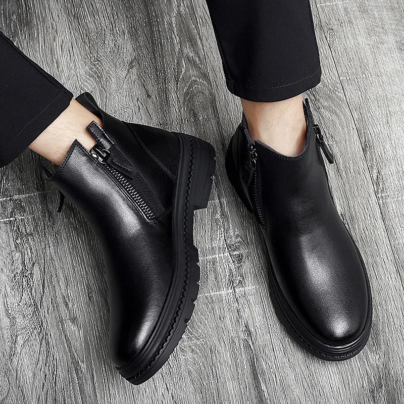 Men s ankle boots fashion British casual boots with fur warm high top soft so...