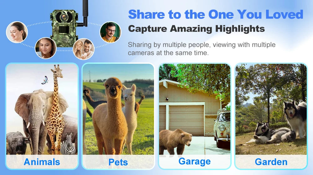 Powered by 4G LTE data transmission. Once the camera triggers, pictures or videos are sent to you Mobile APP directly no matter when and where you are. It saves you a lot of time to retrieve SD cards and you can focus your efforts on what's important. you can change camera settings from APP and let it sync with your trail cam hundred of miles away . Best for outdoorsman either you are hunters, wildlife watchers or bird watchers.