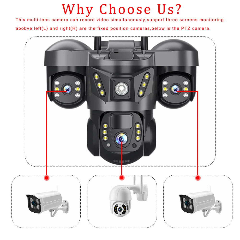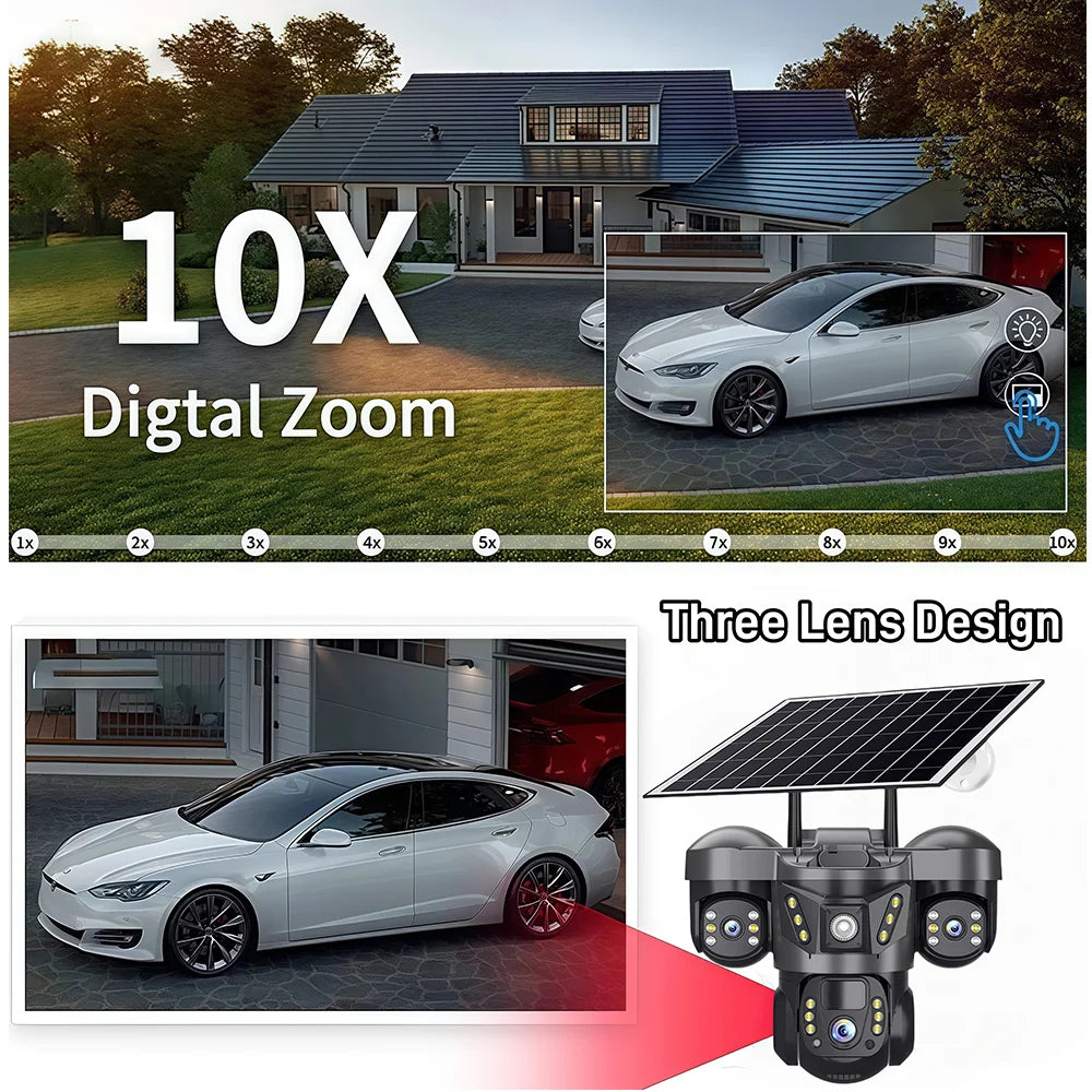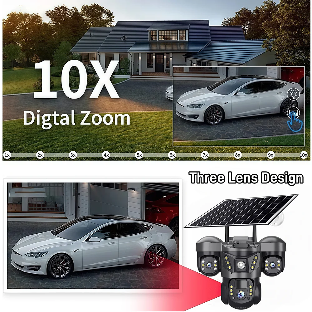 The unique Three-screen feature allows you to view both wide-angle and zoomed simultaneously on a single interface, streamlining surveillance management. This innovative design simplifies monitoring by eliminating the need to switch between multiple screens or cameras, ensuring you have a comprehensive overview of your property at all times.