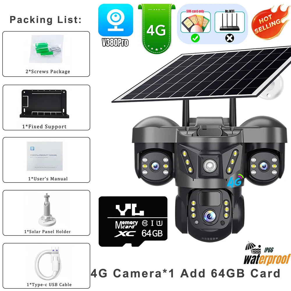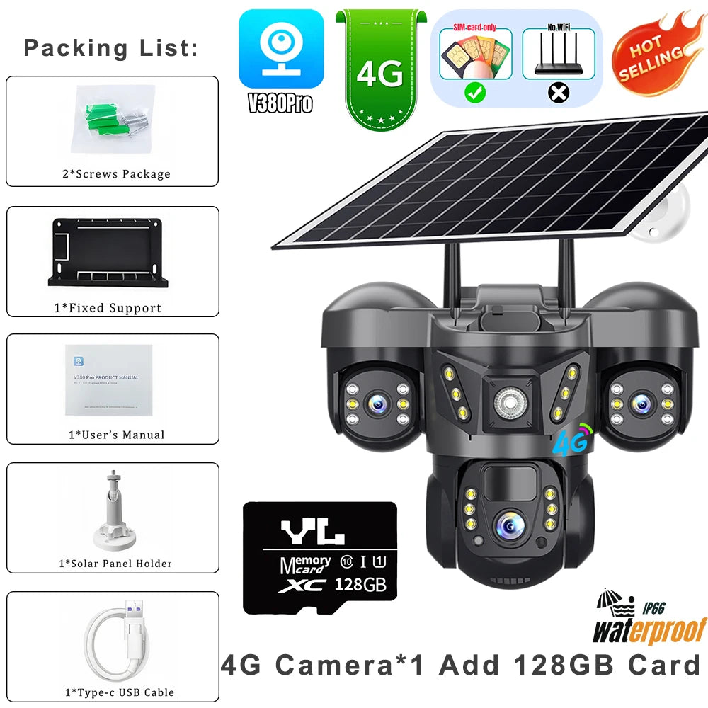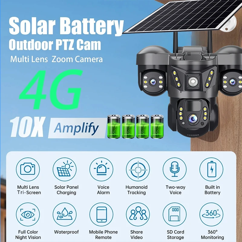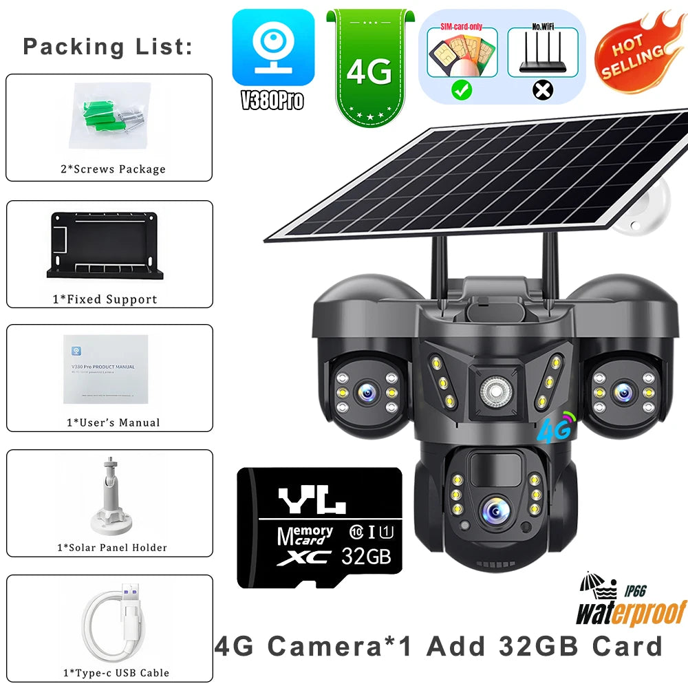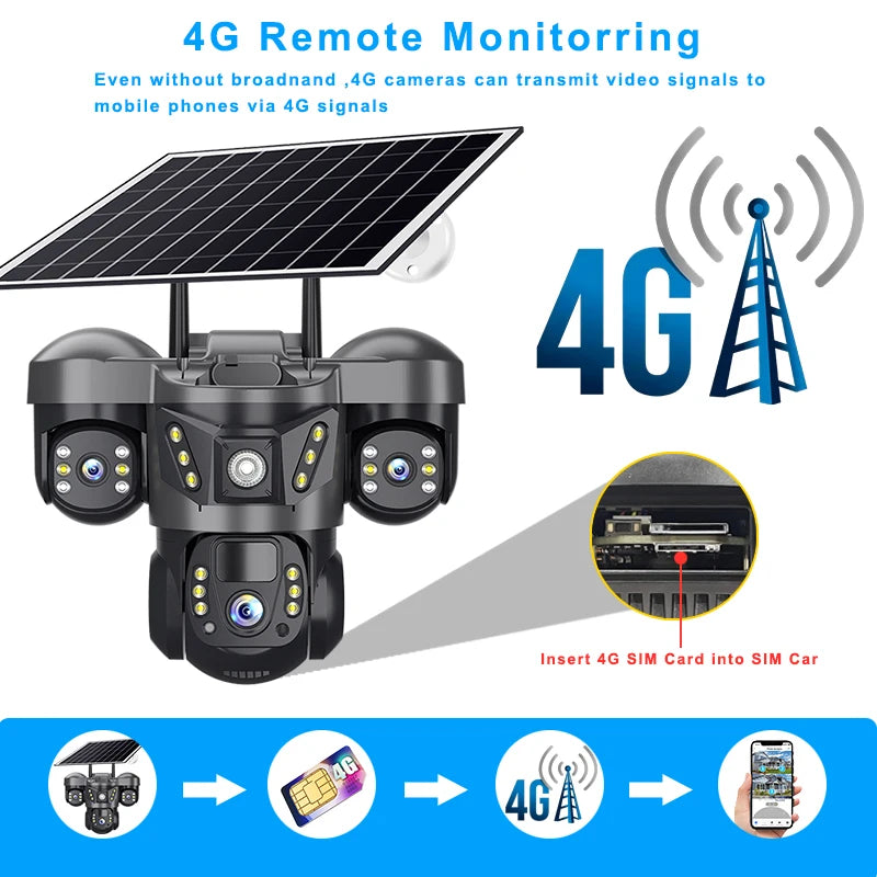 4G Solar Camera Wirless IP Cctv Video Surveillance Cameras Outdoor 360 Monitor