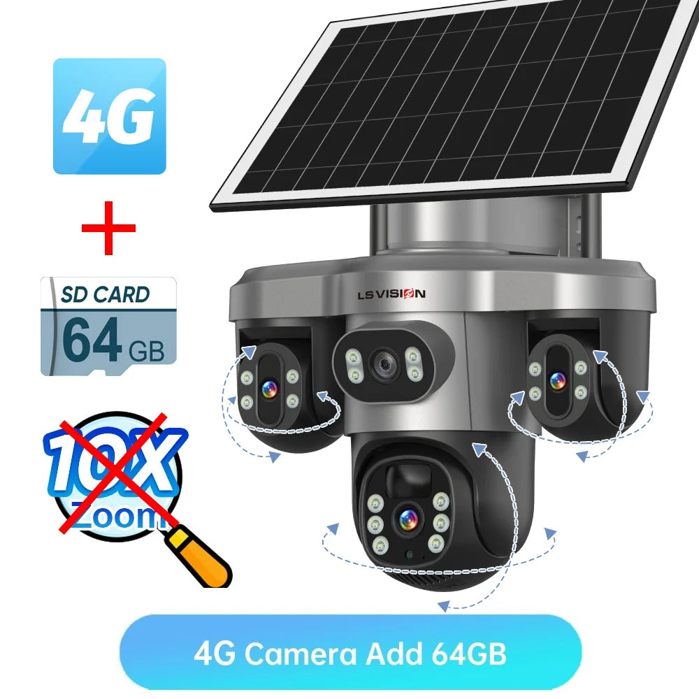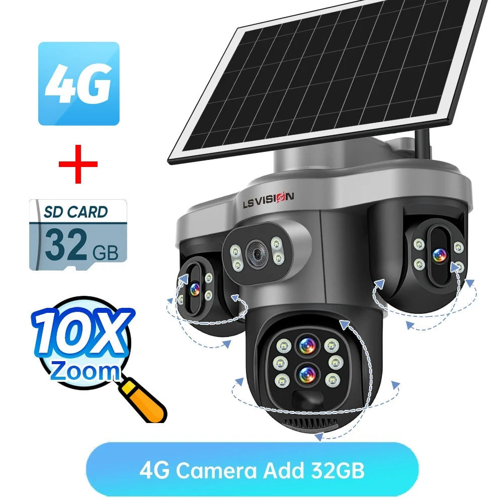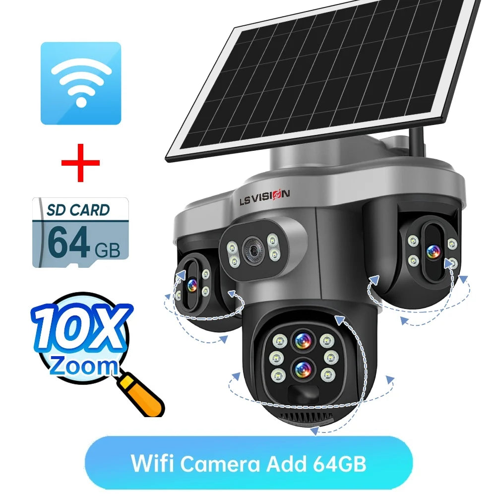 LS Vision 10X Optical Zoom 20mp 4G Wifi Solar Camera Outdoor 3 Screens 3 PTZ ...