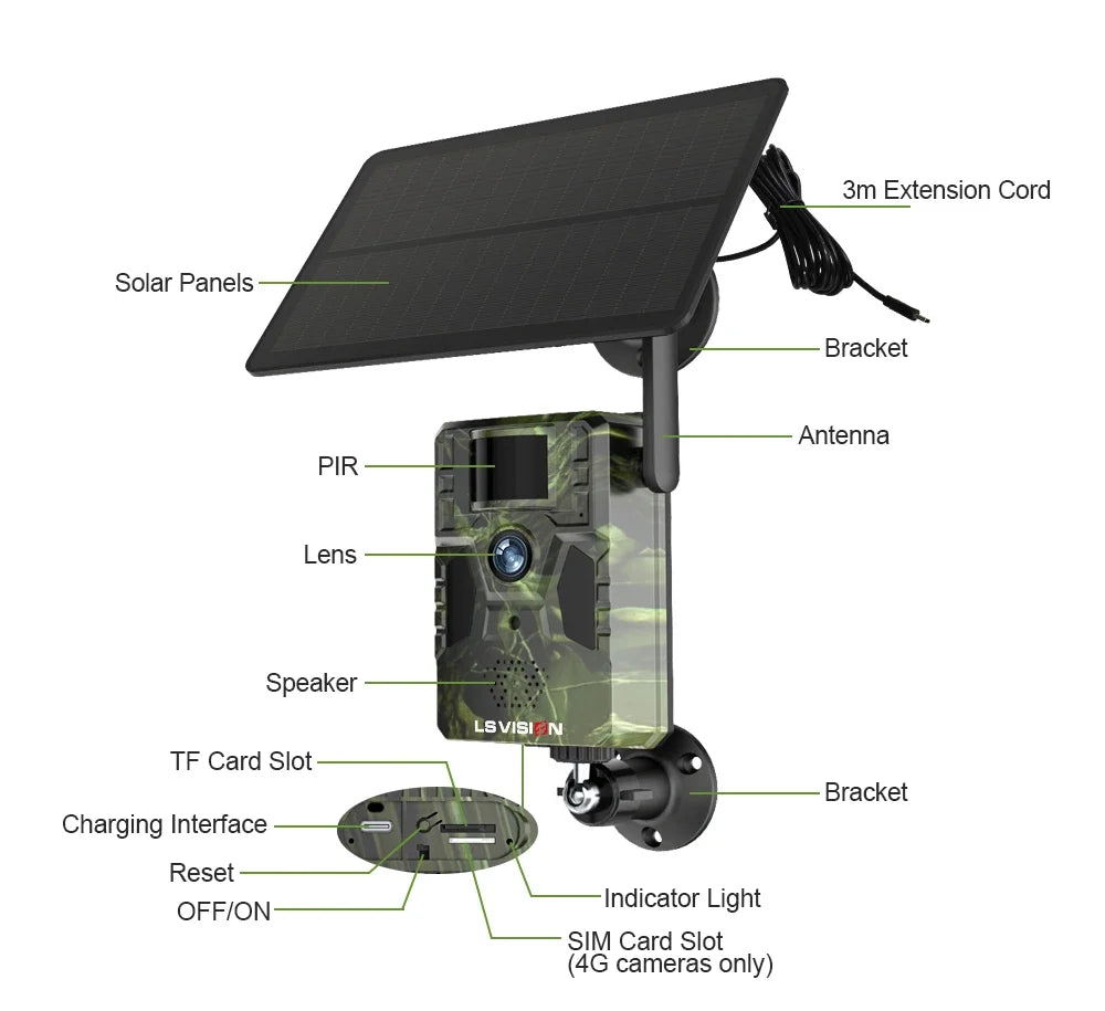 LS Vision 4G Wild Solar Trail Camera GPS 20M PIR Motion Detection Photo Traps...