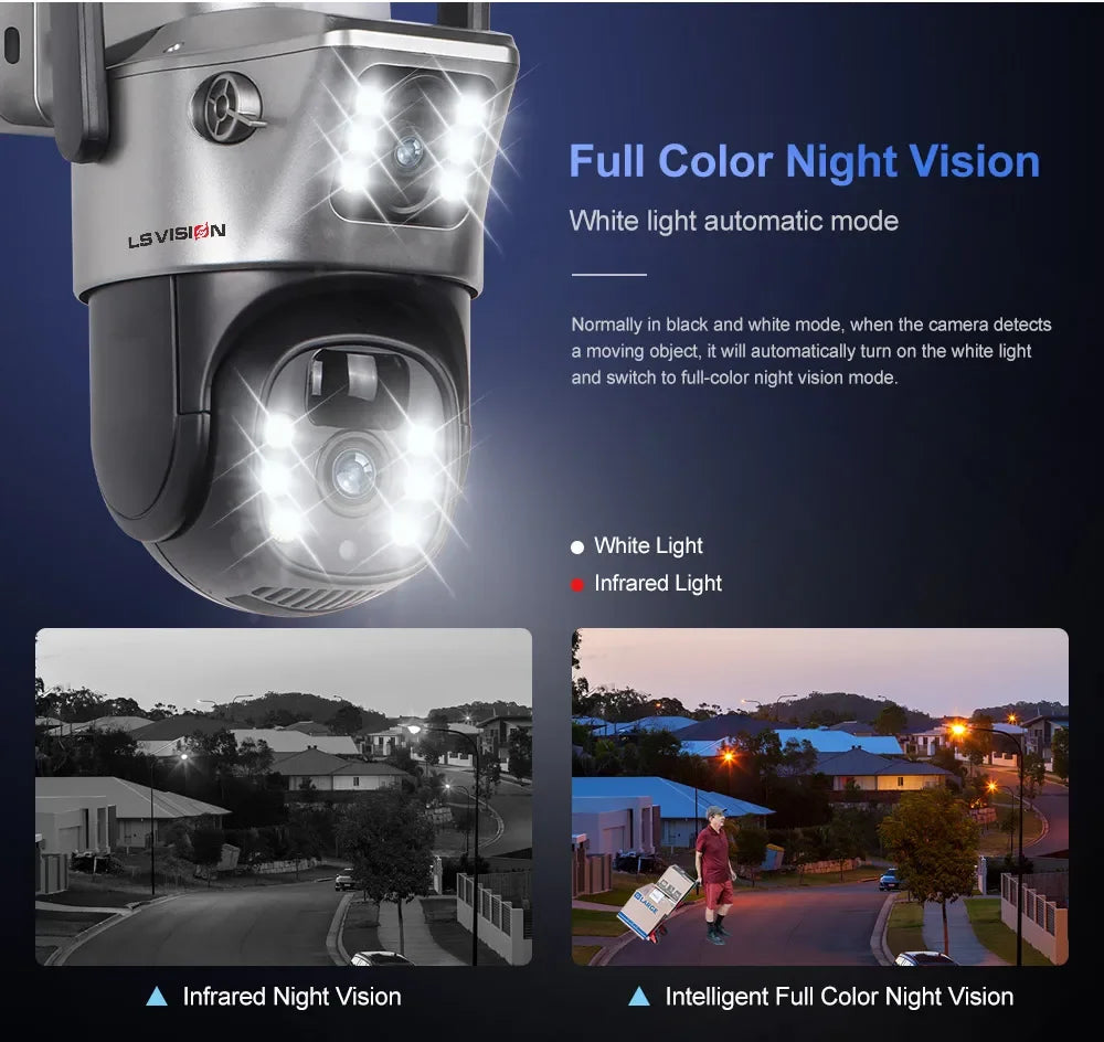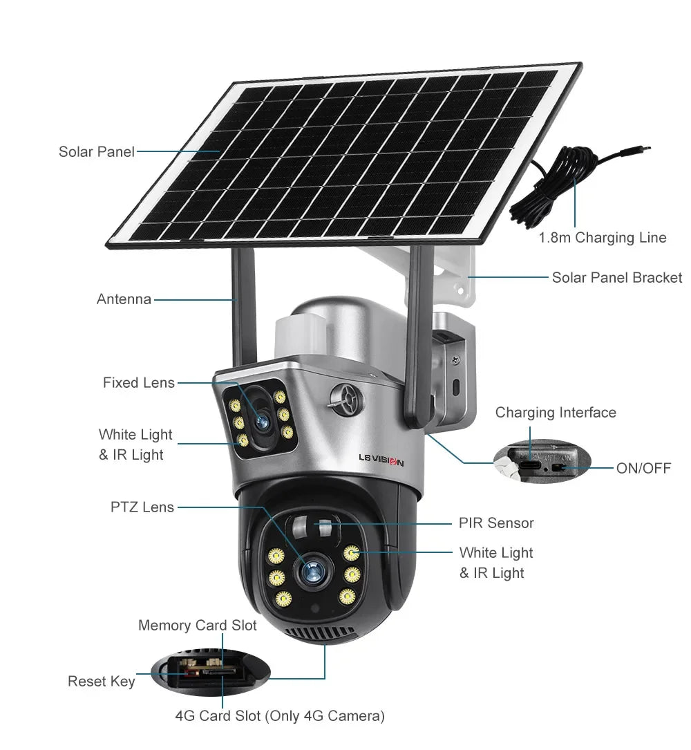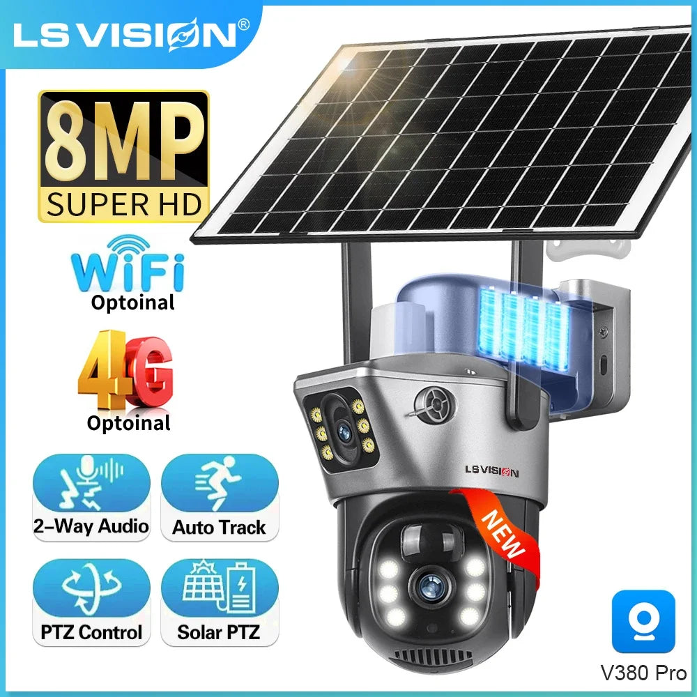 LS Vision 4K 8MP PIR Solar Camera 4G Sim Dual screens Outdoor WiFi Solar Batt...