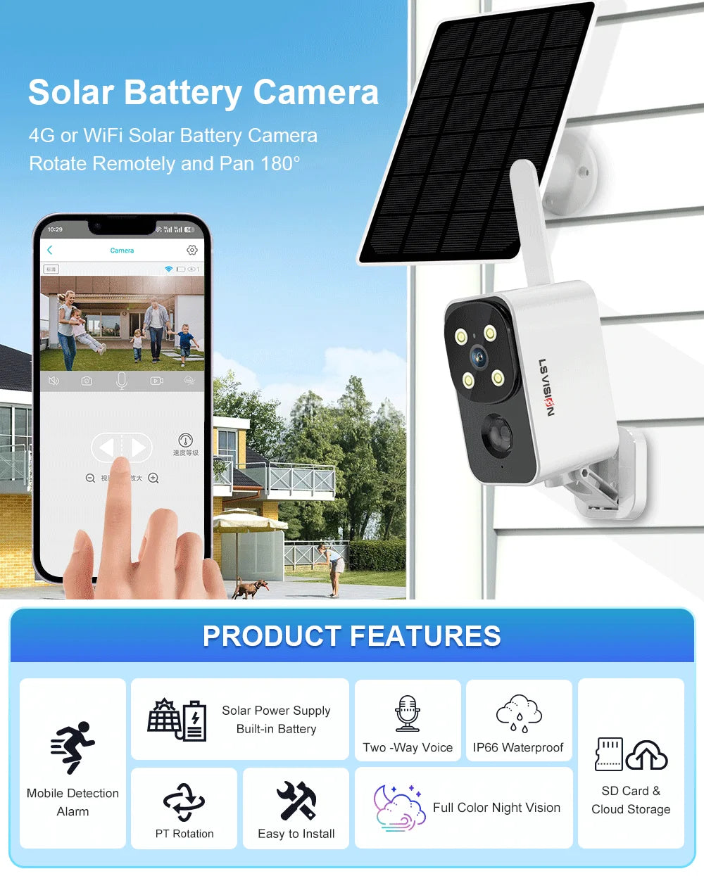 LS Vision 4MP 4G WiFi Security Camera Rotatable PTZ Solar Battery Outdoor Sur...